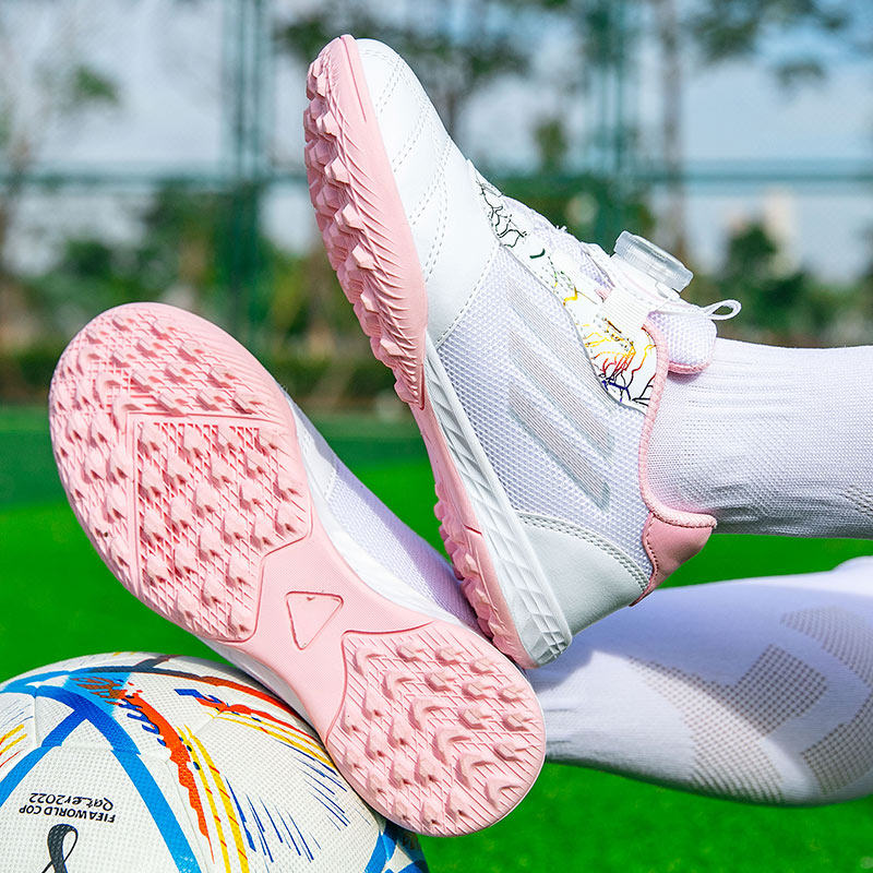 新款儿童足球鞋女童碎钉春夏网面透气男女孩中小学生免系带训练鞋