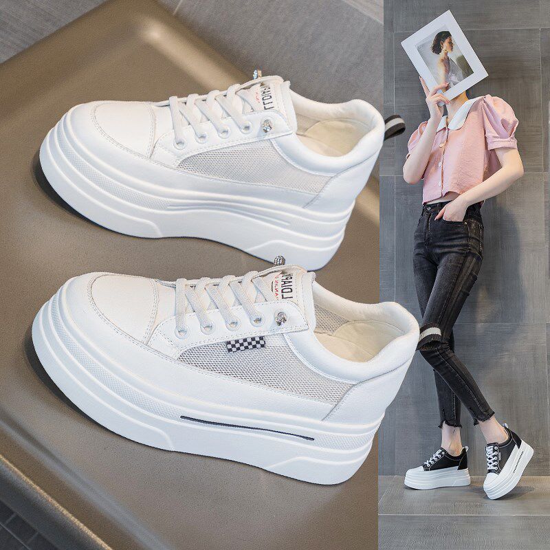 夏季薄款小白鞋女2024新款爆款厚底内增高女鞋网面透气夏天配裙子