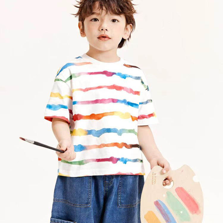 品牌折扣男童短袖t恤宝宝纯棉打底衫2025春装新款童装儿童上衣潮