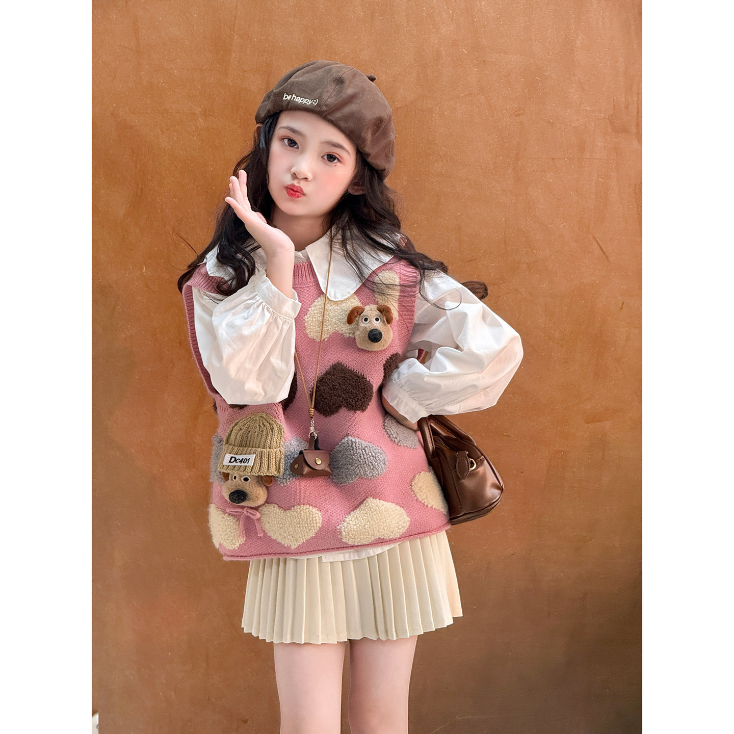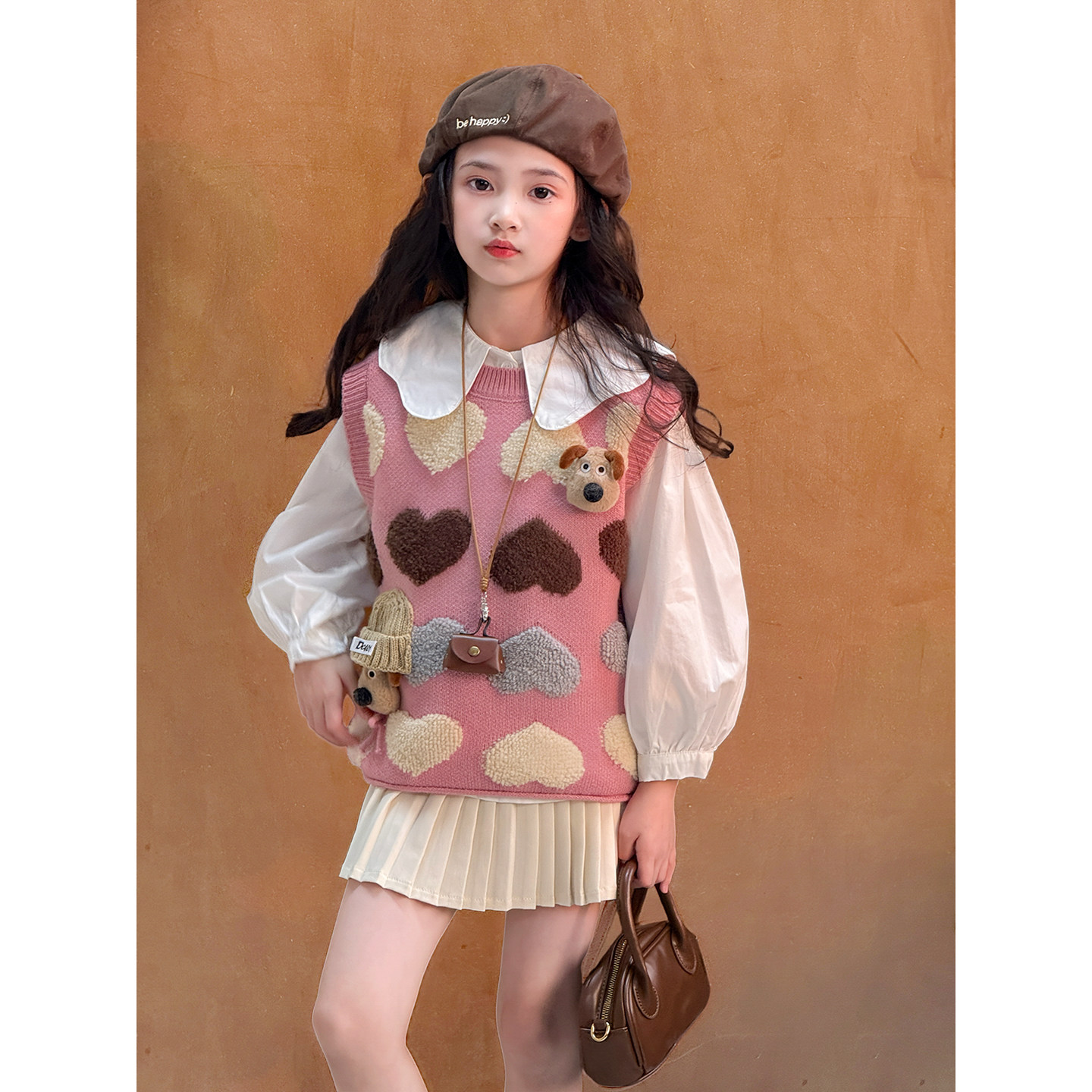 女童套装2026春季新款儿童针织马甲衬衫中大童毛衣背心上衣两件套