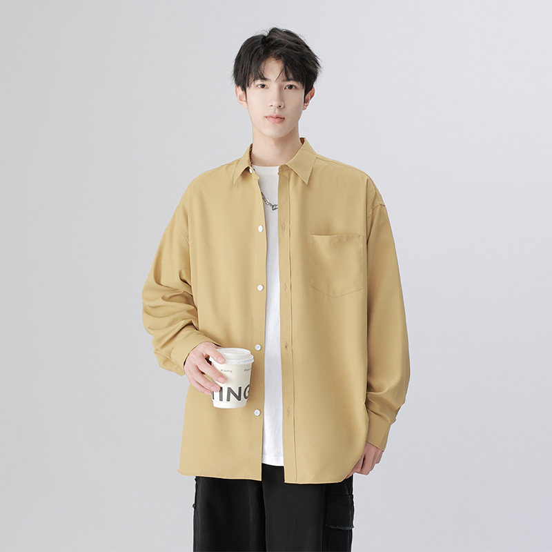 衬衫男款痞帅高级感长袖早春季薄款宽松村子口袋港风休闲衬衣外套