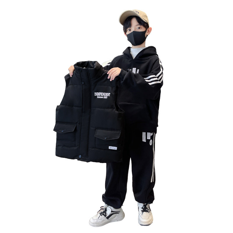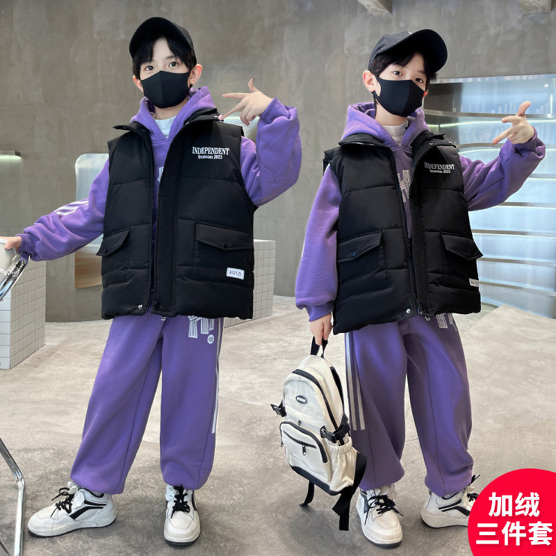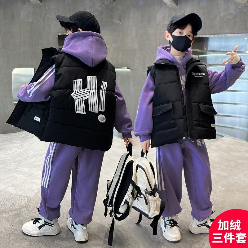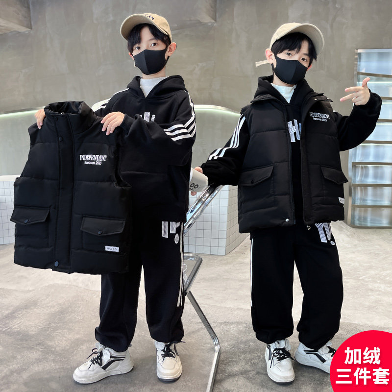 男童秋冬加绒套装2025新款儿童三件套中大童男孩衣服潮款酷帅洋气