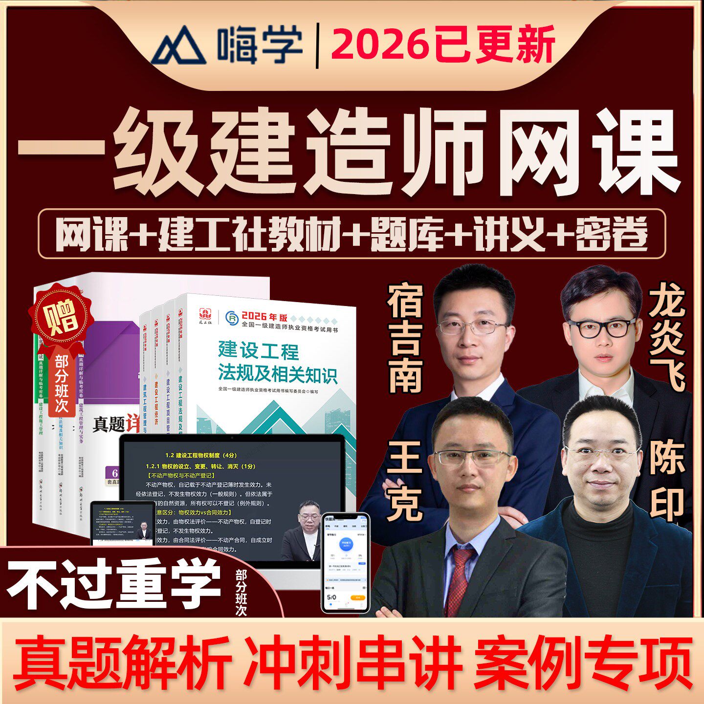 嗨学网2026一建网课视频一级建造师官方教材法规陈印管理宿吉南建筑龙炎飞经济徐蓉机电王克实务精讲班考试课程电子版讲义历年真题