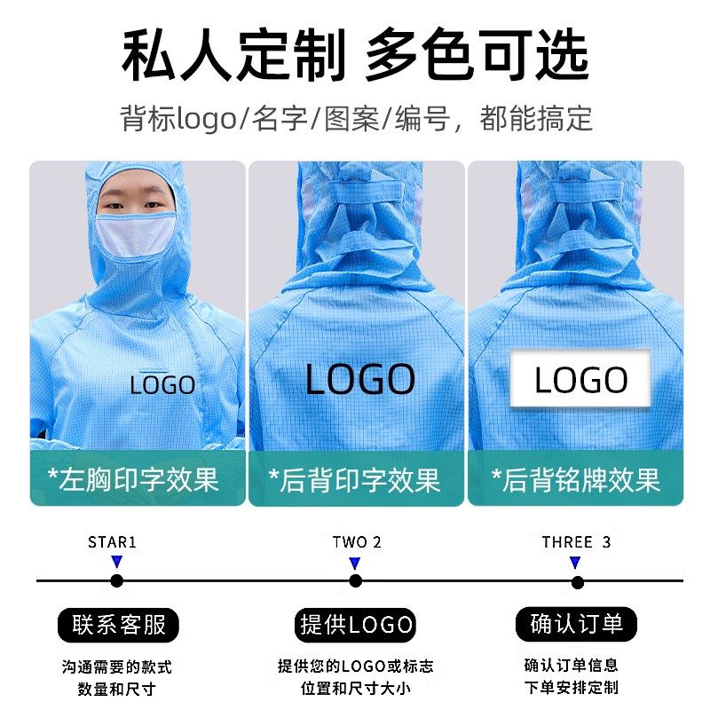 百级无尘服网格连体带口袋背标净化车间全身防护防尘防静电工作服