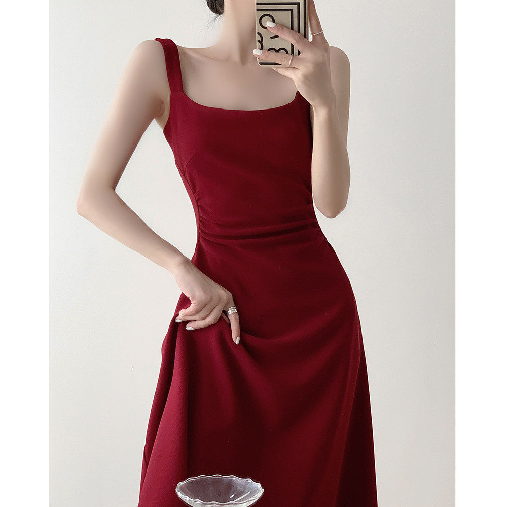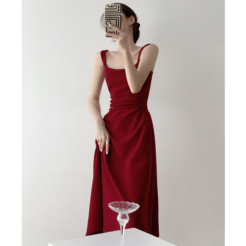 红色吊带连衣裙子女士装夏季2026年新款收腰显瘦气质高级感中长裙