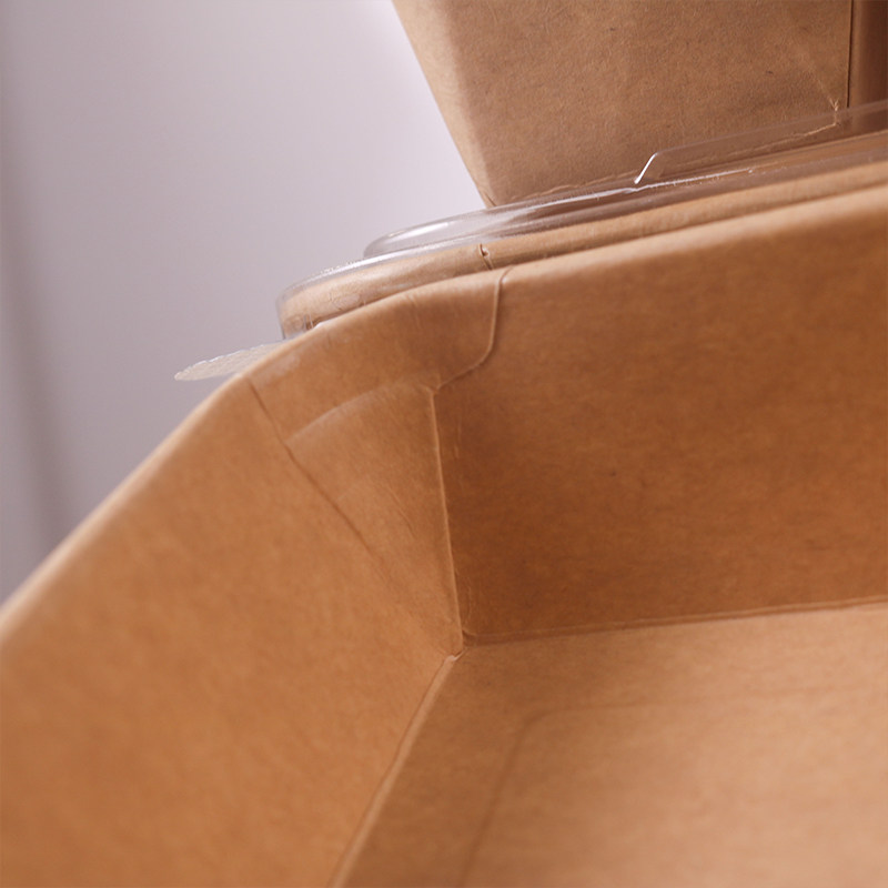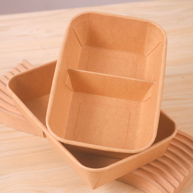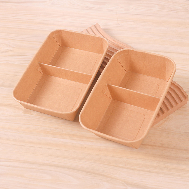 双格牛皮纸餐盒长方形打包盒带盖甜品轻食沙拉便碗当外卖批发商用