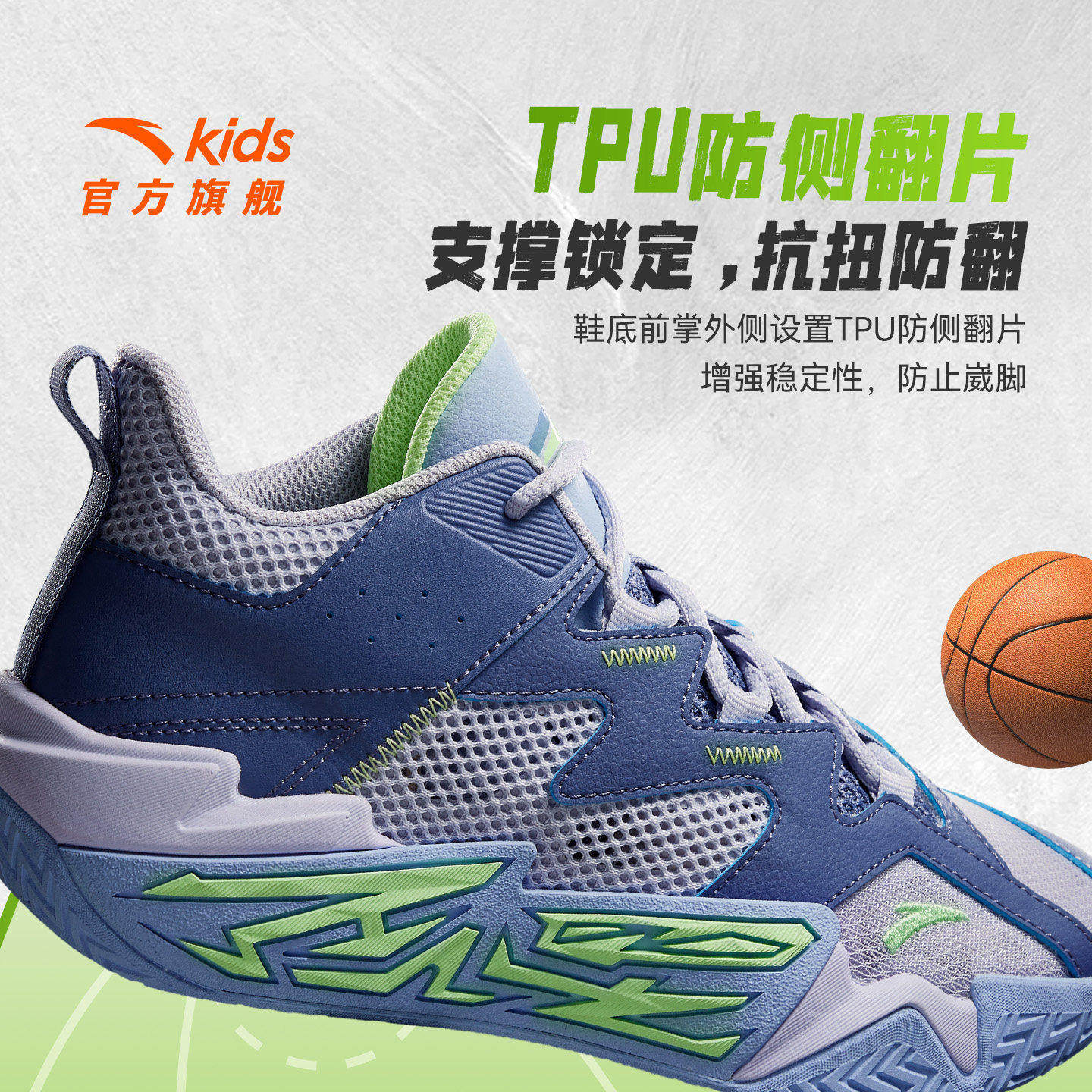 水泥大磨王|安踏儿童篮球鞋2026春夏新款网面透气缓震防滑运动鞋