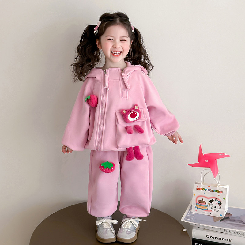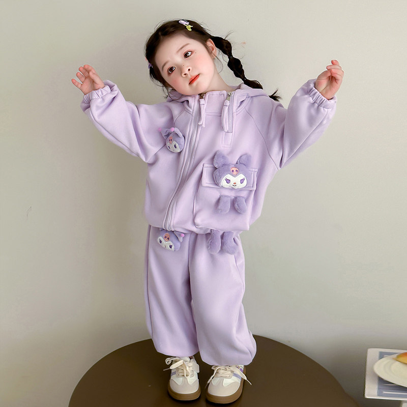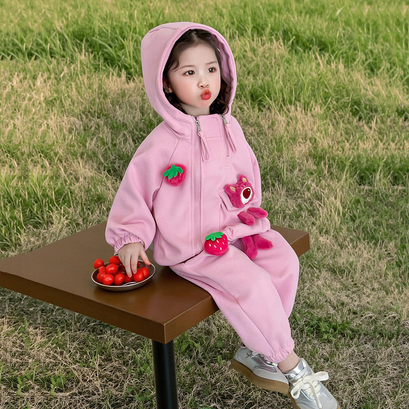 女童卫衣套装春秋季2026新款小女孩儿童洋气连帽宝宝时髦休闲春装