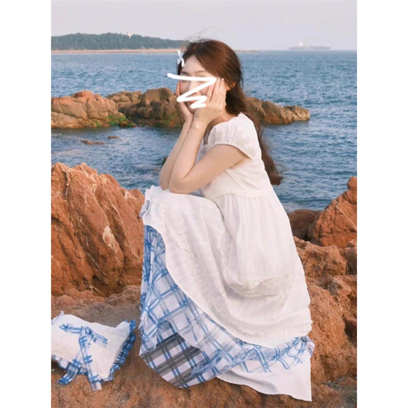 万类原创服饰法式温柔风白色短袖连衣裙子女夏季小个子海边度假风