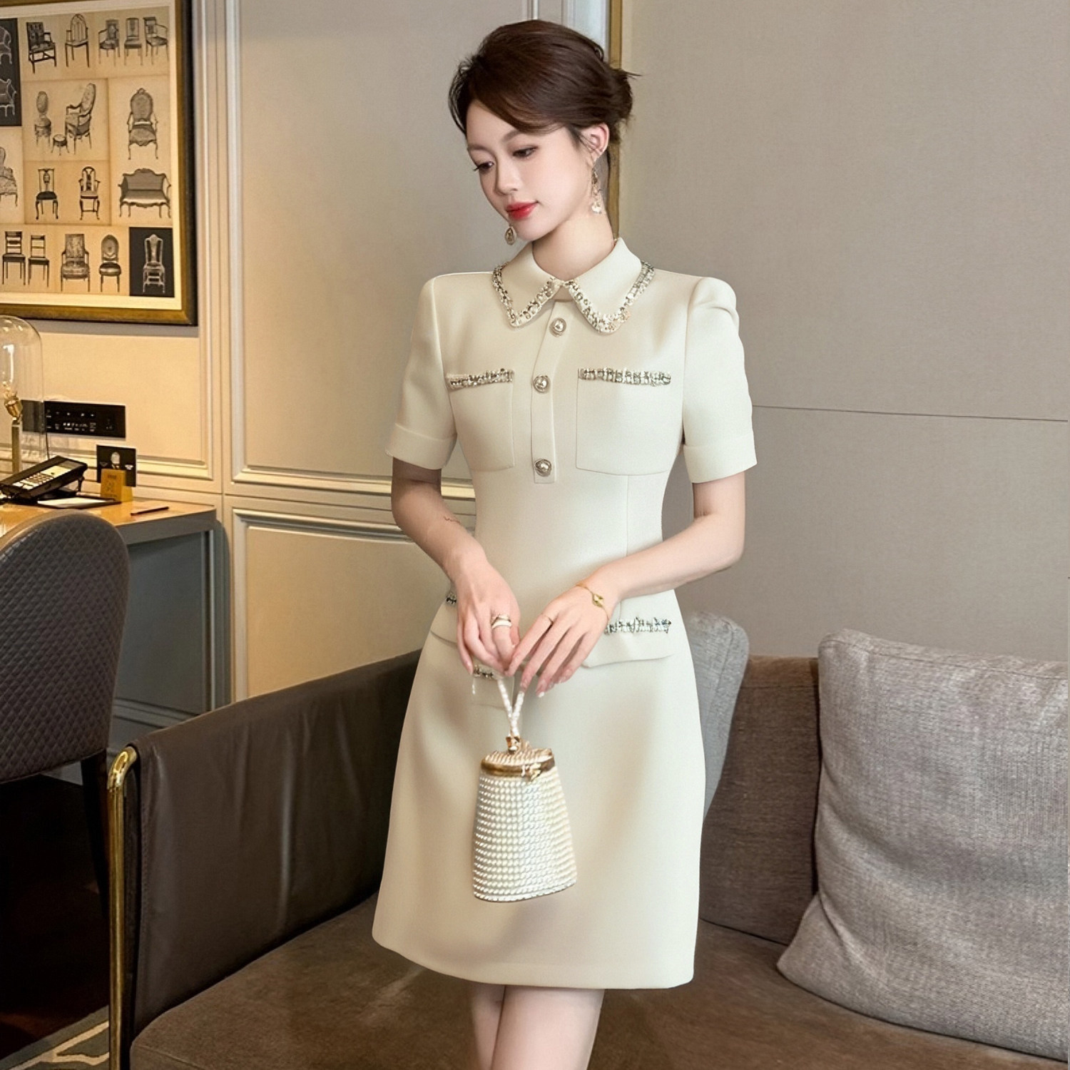 2026春季新款连衣裙女高级设计感小个子时尚白色小香风裙子D1640