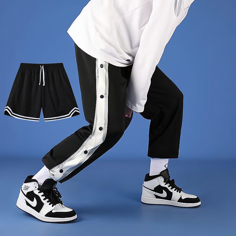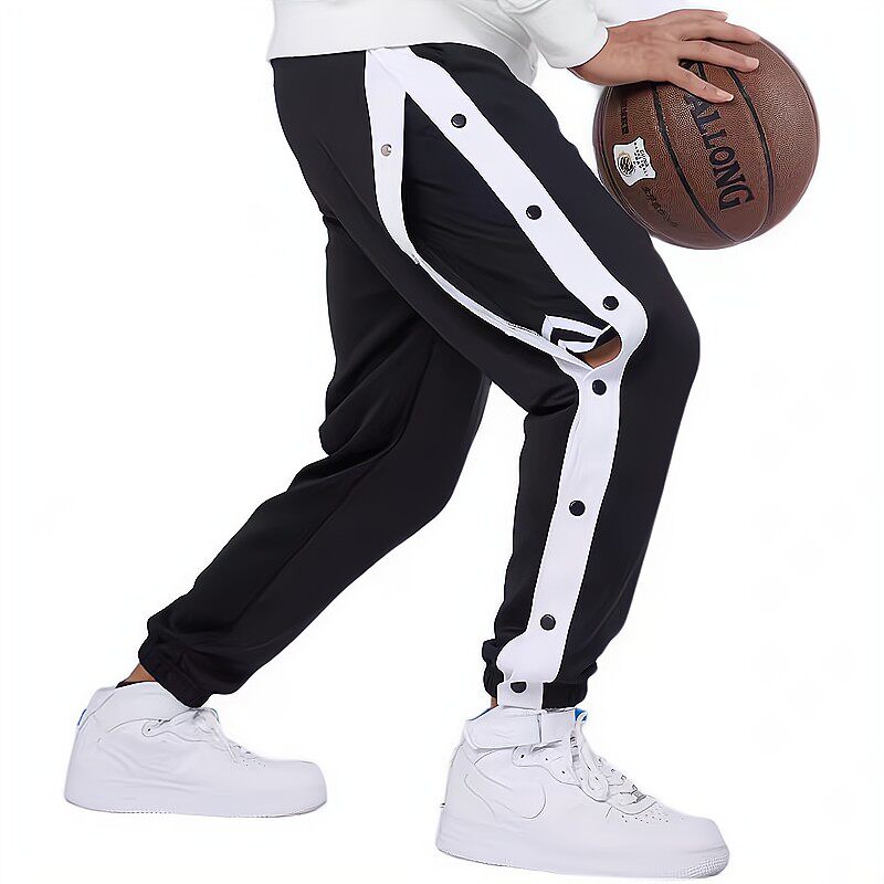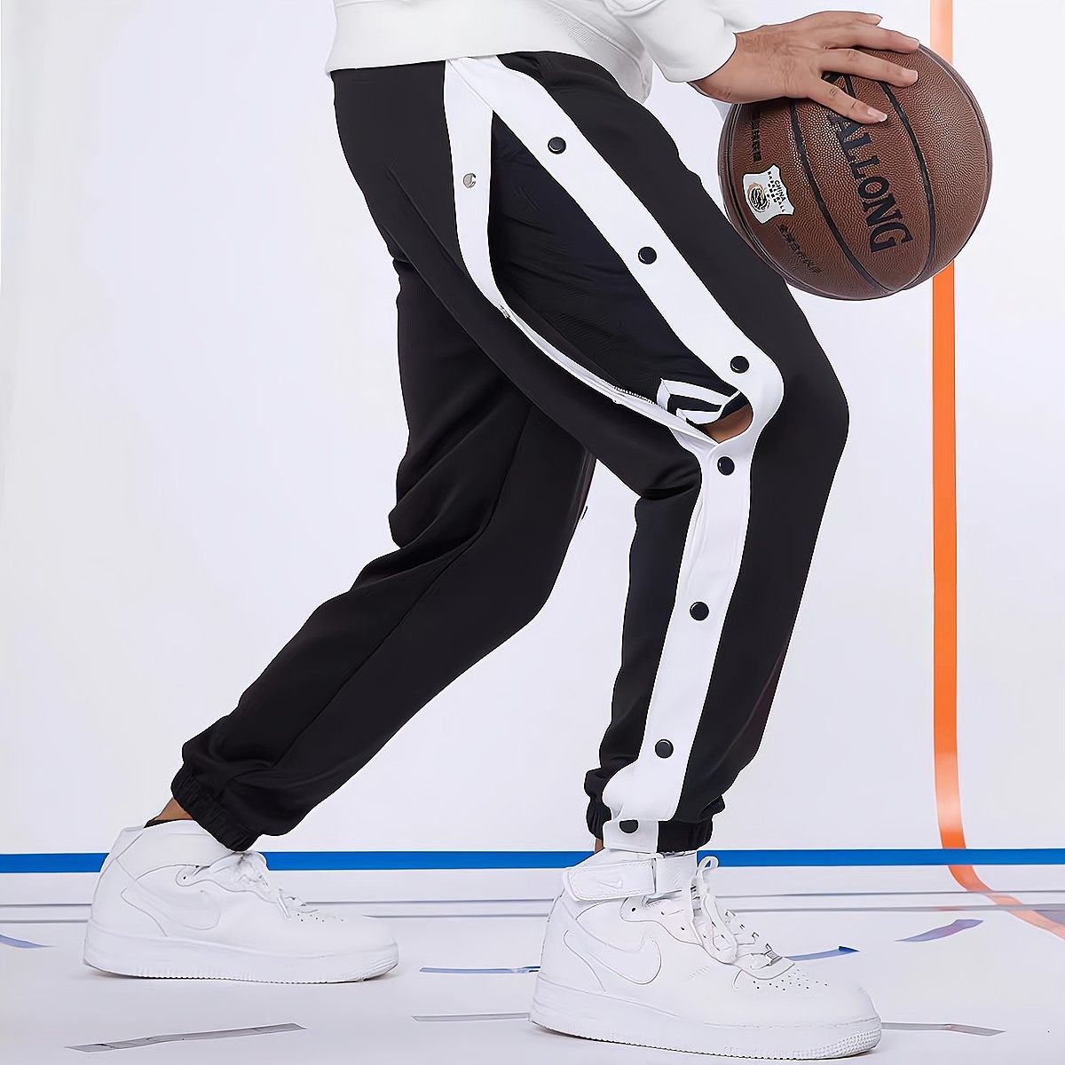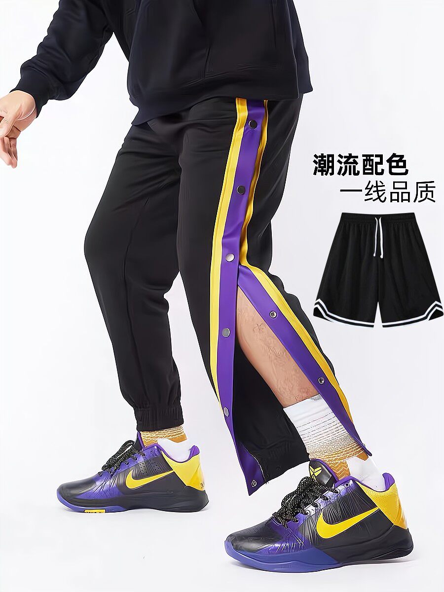 美式篮球排扣裤男夏季全开扣秒脱束脚儿童运动长裤训练服灰色黑色