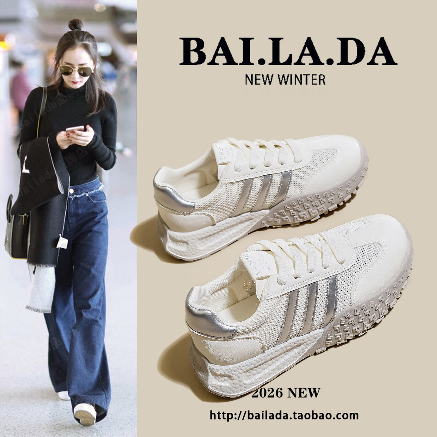 爆款透气网面德训小白女款2026春夏季新款百搭休闲运动阿甘女鞋子