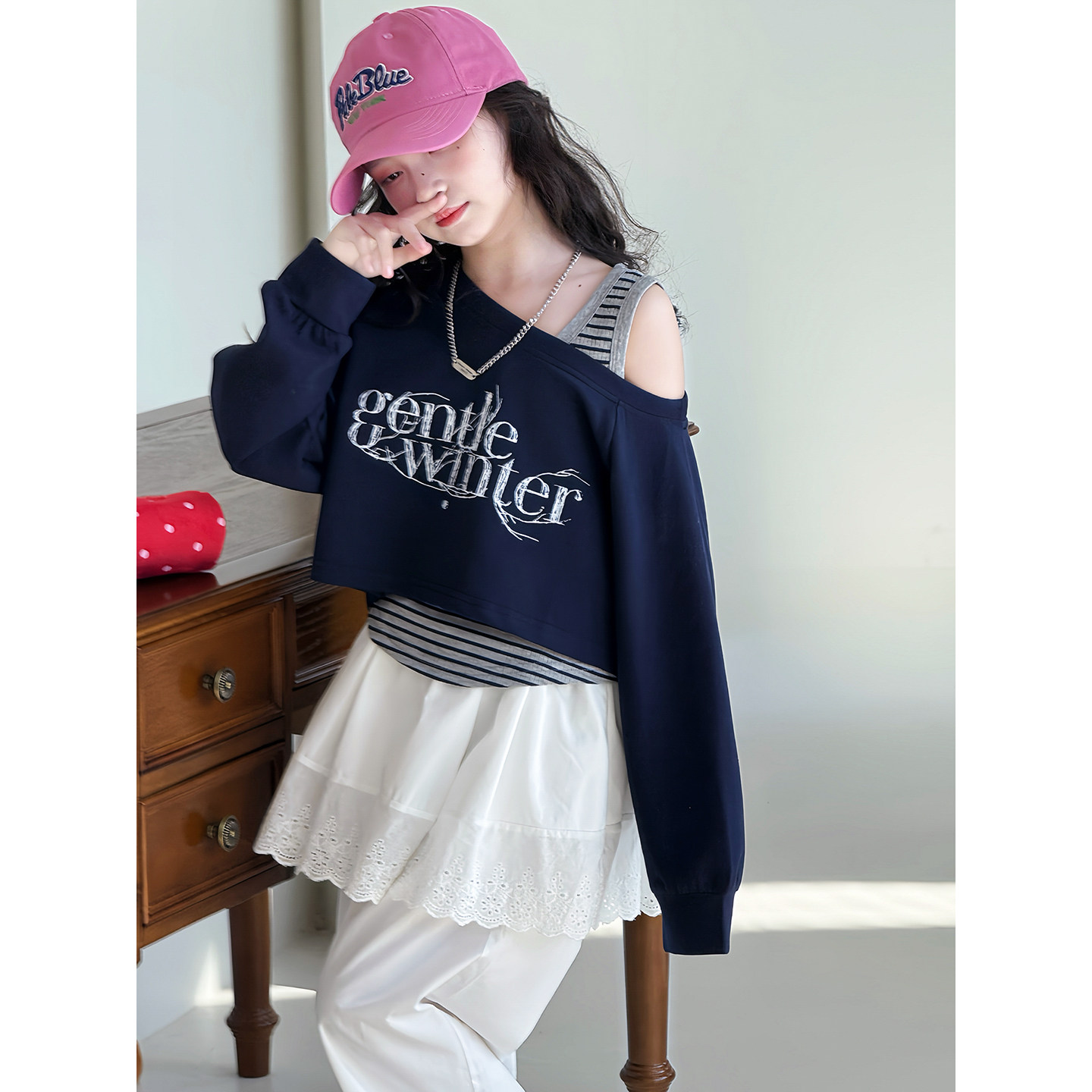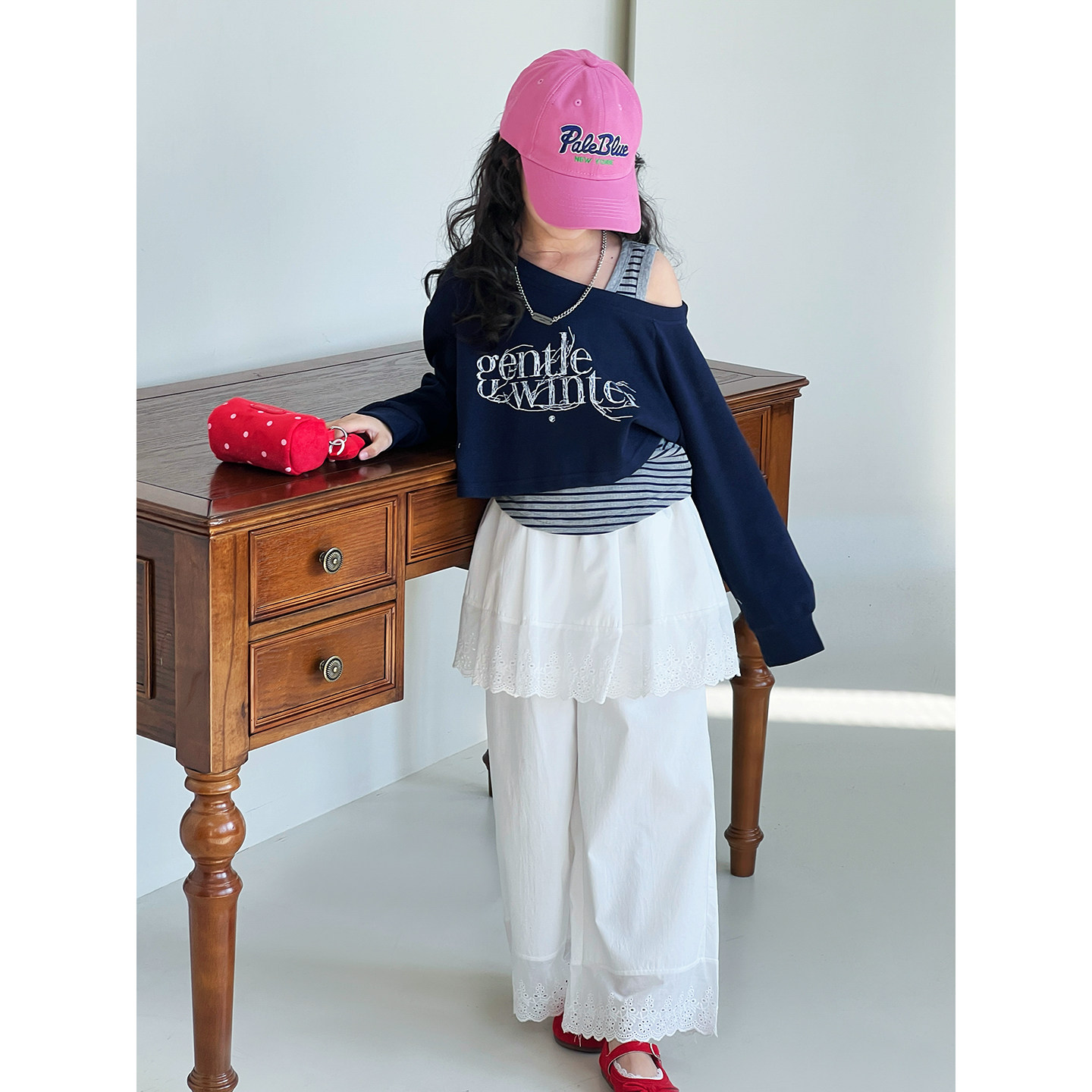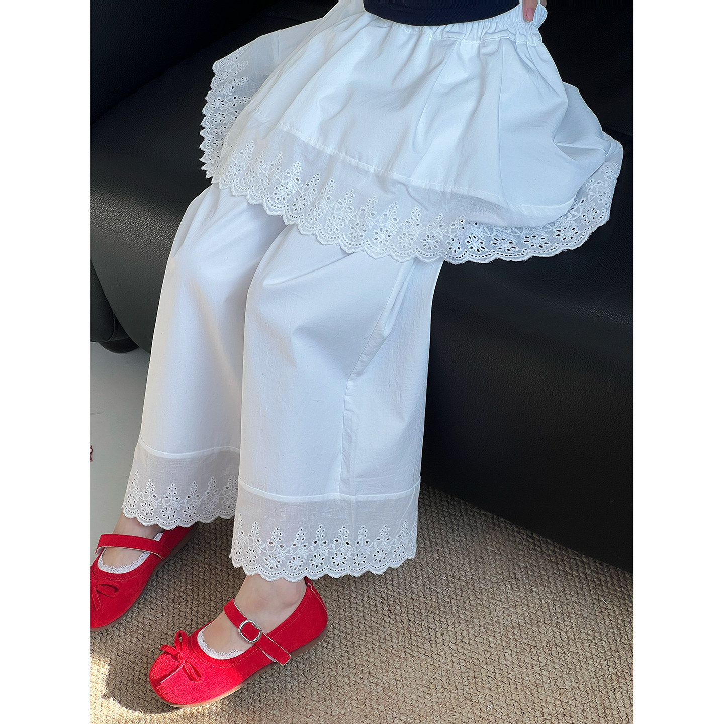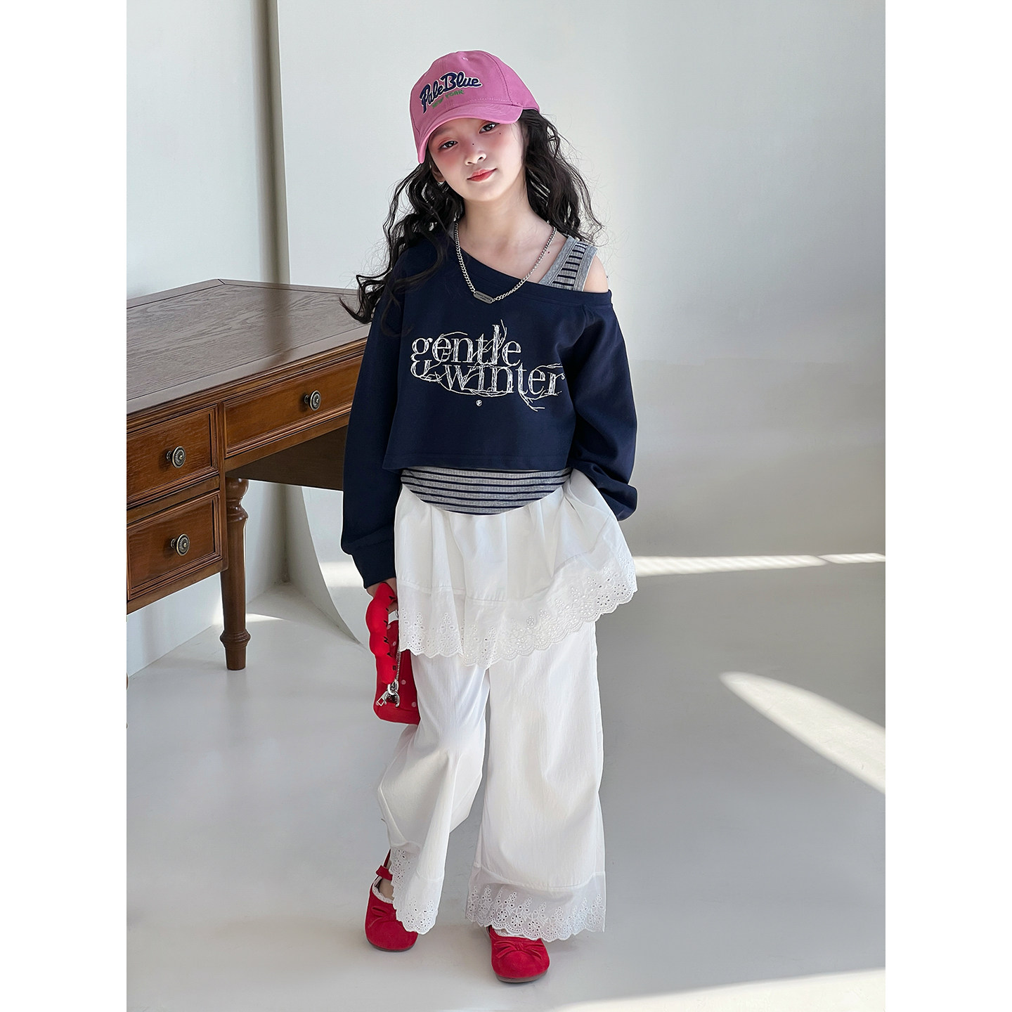 女童裤子2026春季新款儿童拼接花边阔腿裤春装中大童韩版休闲长裤