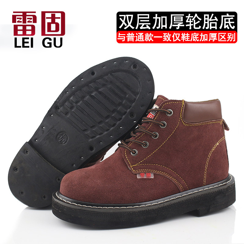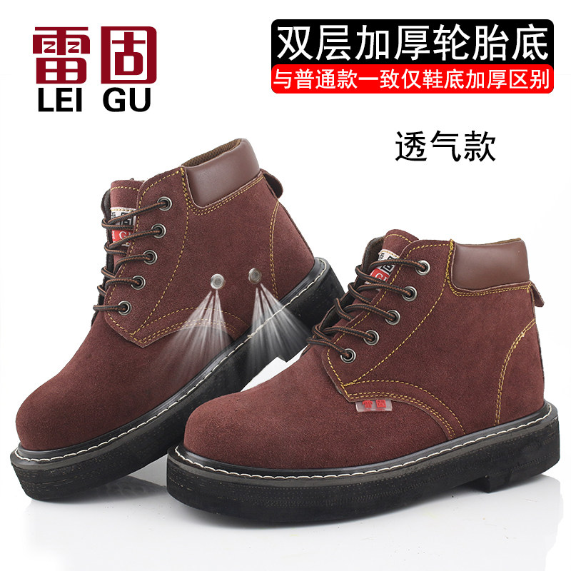 雷固加厚轮胎底劳保鞋男防砸防刺穿反绒牛皮耐高温专用耐磨工作鞋