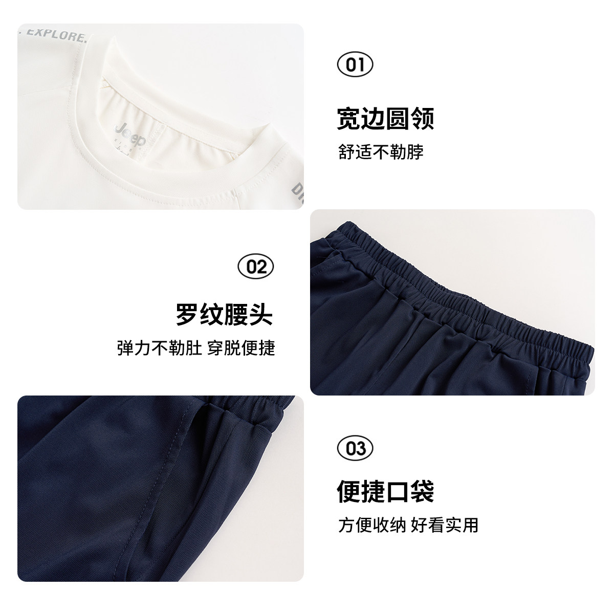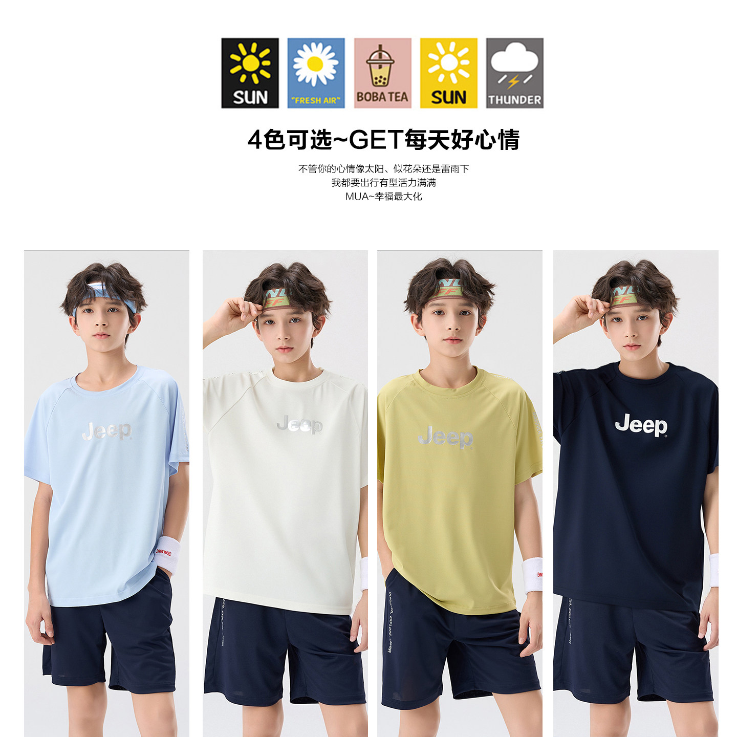 Jeep吉普男童运动速干套装2026夏新款运动网球服短袖短裤两件套潮