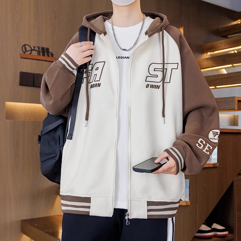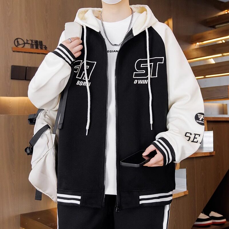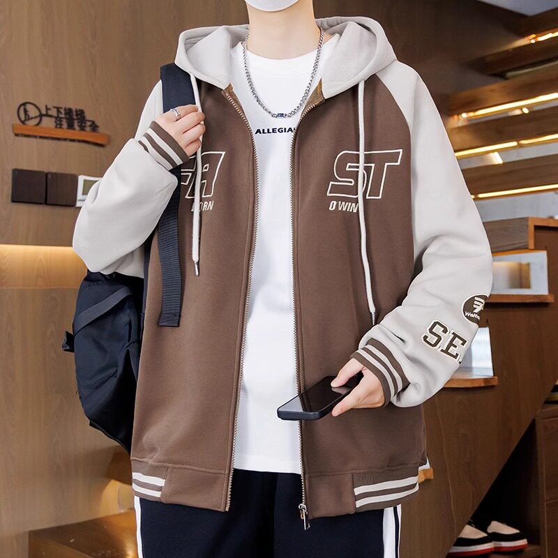 春秋季开衫卫衣男孩初中高中学生帅气外套青少年大童男装宽松上衣