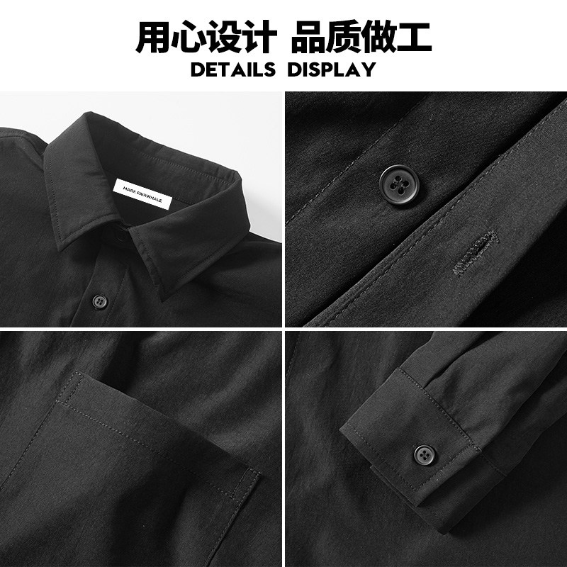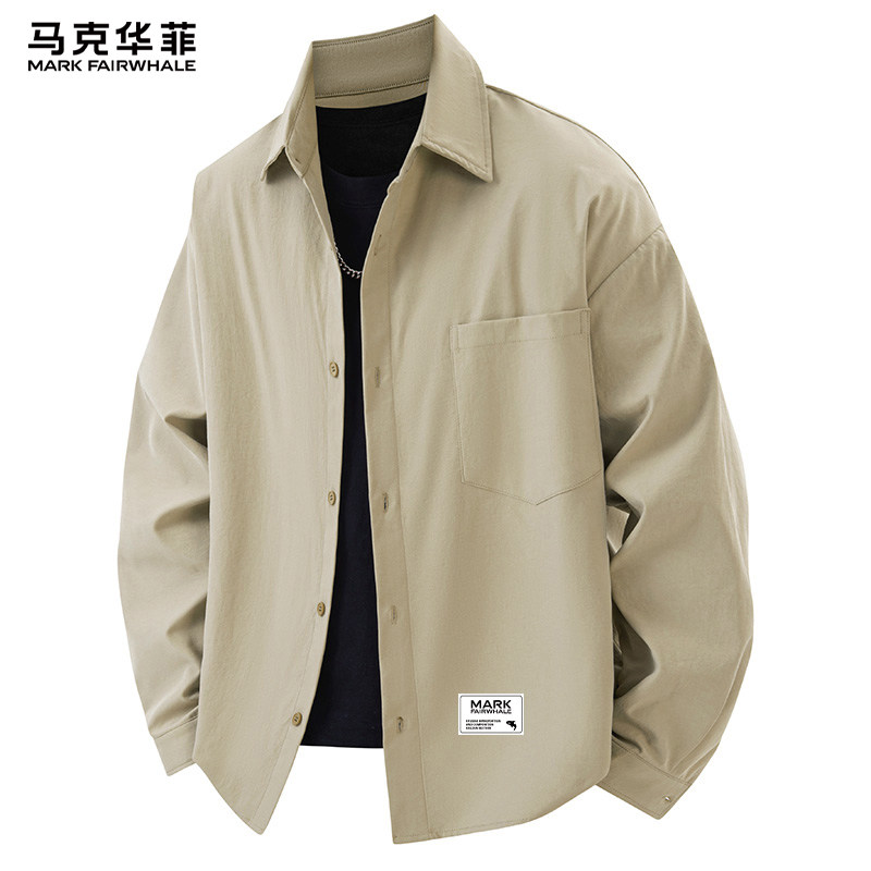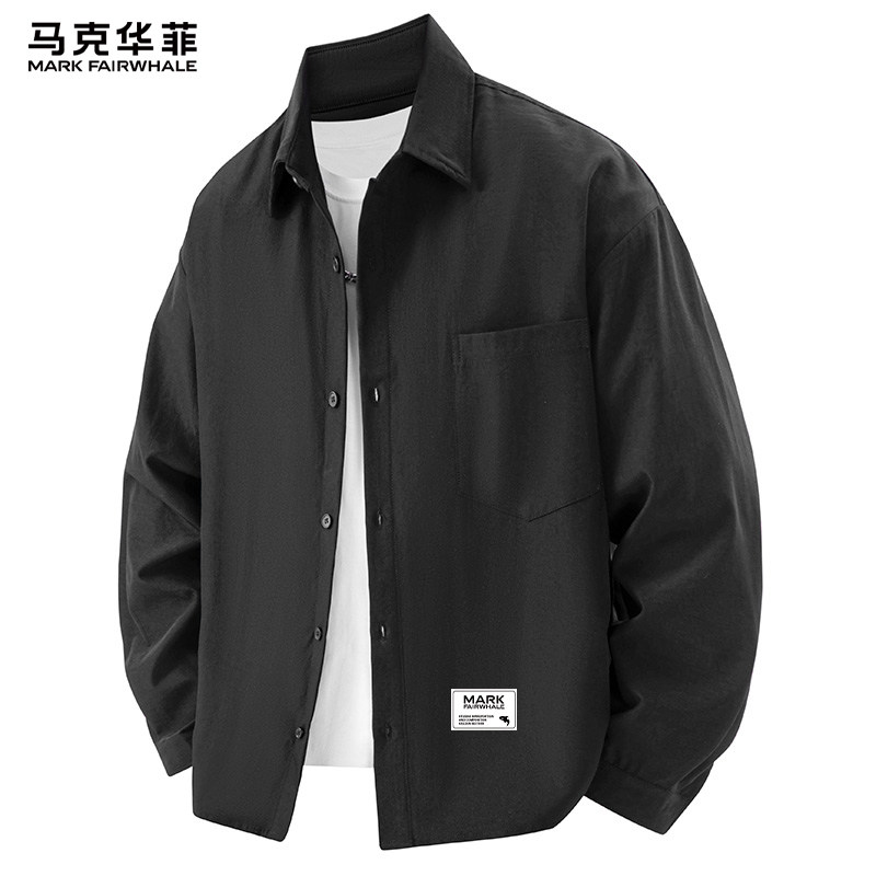 马克华菲翻领纯色长袖衬衫男士春装潮牌休闲上衣男款美式衬衣外套