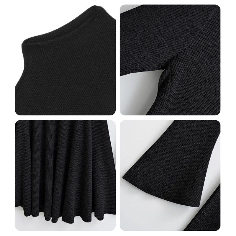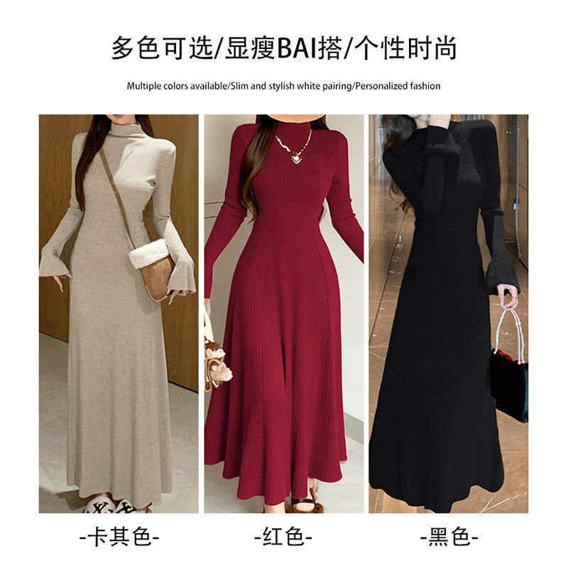 黑色大衣内搭长裙秋冬季连衣裙女长款喇叭袖针织冬装高级感小个子