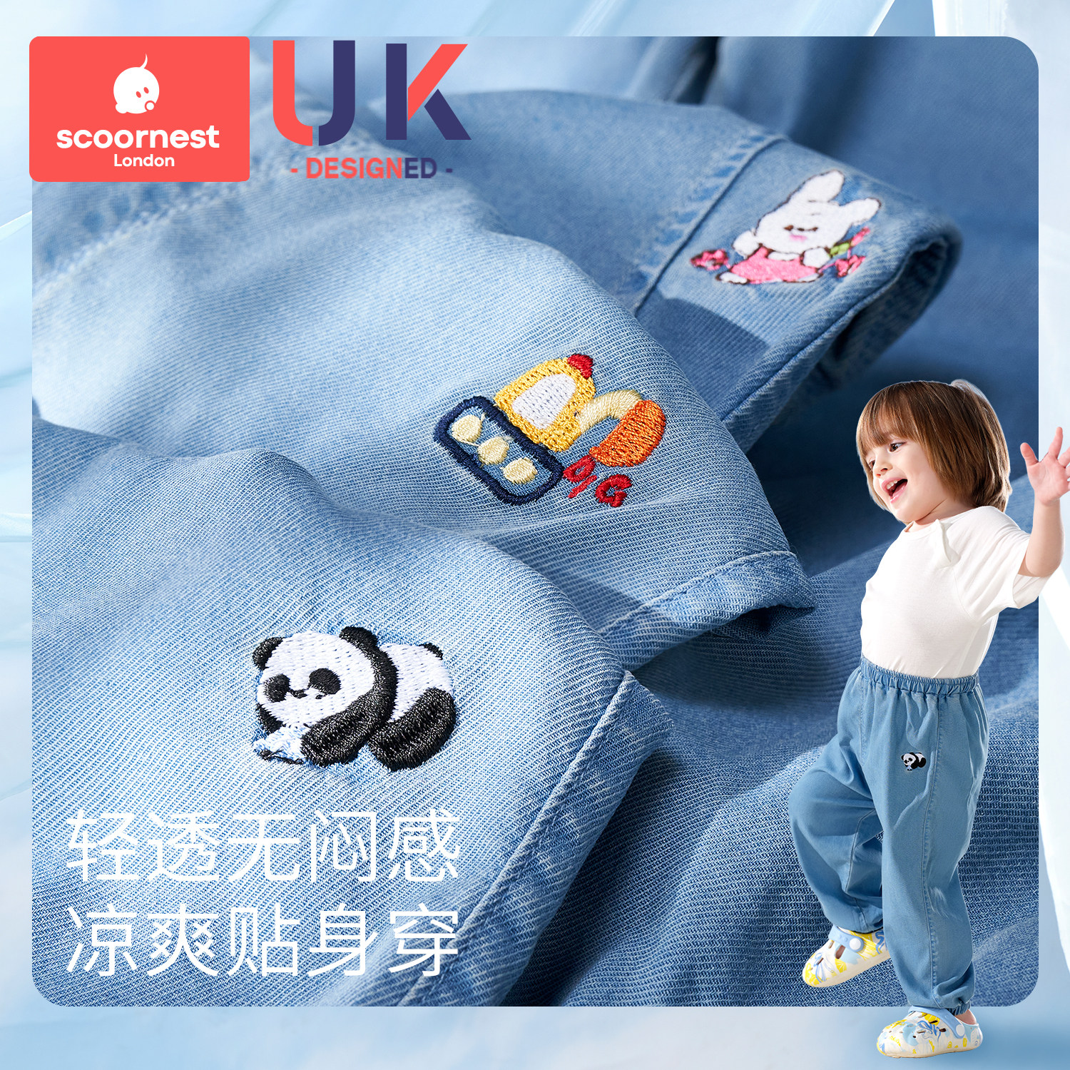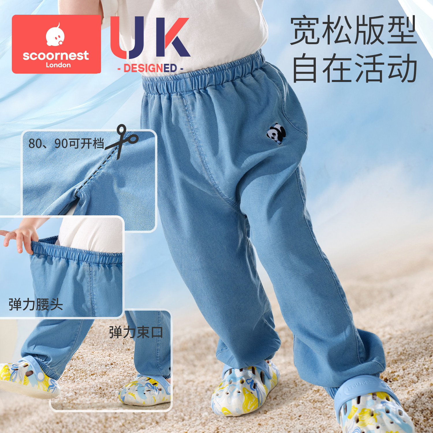 科巢儿童裤子男童女童牛仔裤春夏新款2026宝宝天丝防蚊裤薄款休闲