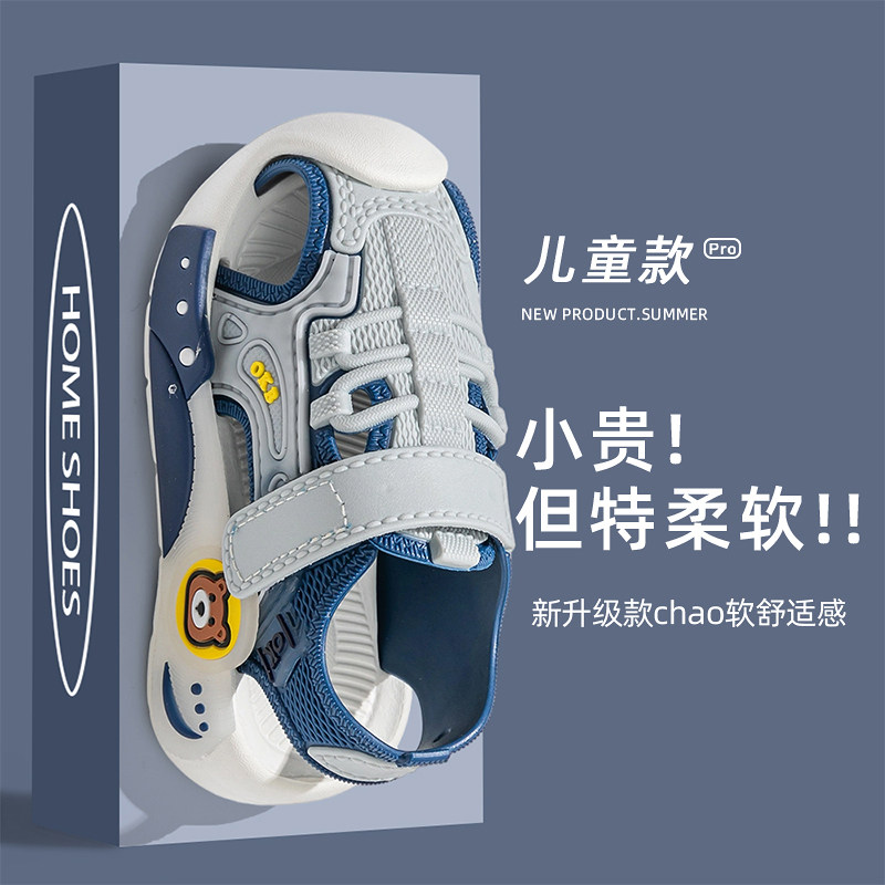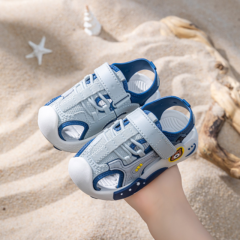儿童包头凉鞋夏季运动风男女童魔术贴防滑软底护脚沙滩鞋