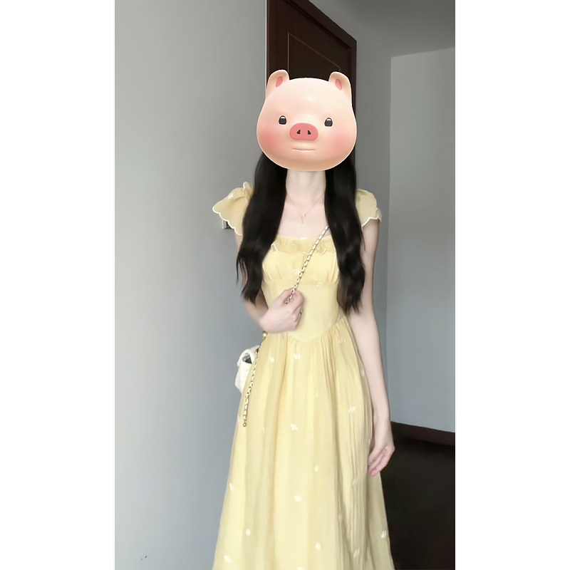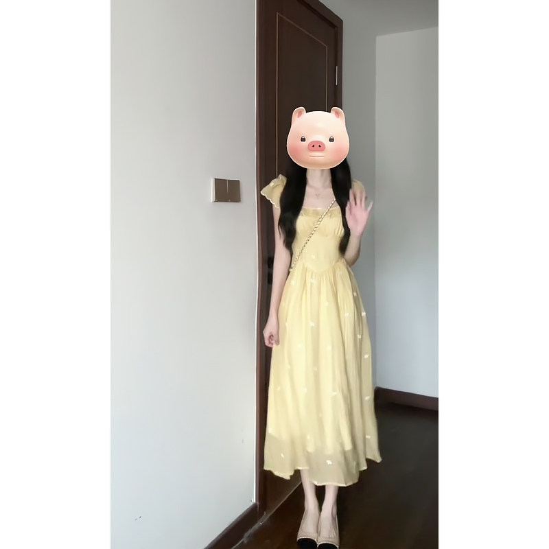 311线报网描述:法式温柔风黄色碎花连衣裙子