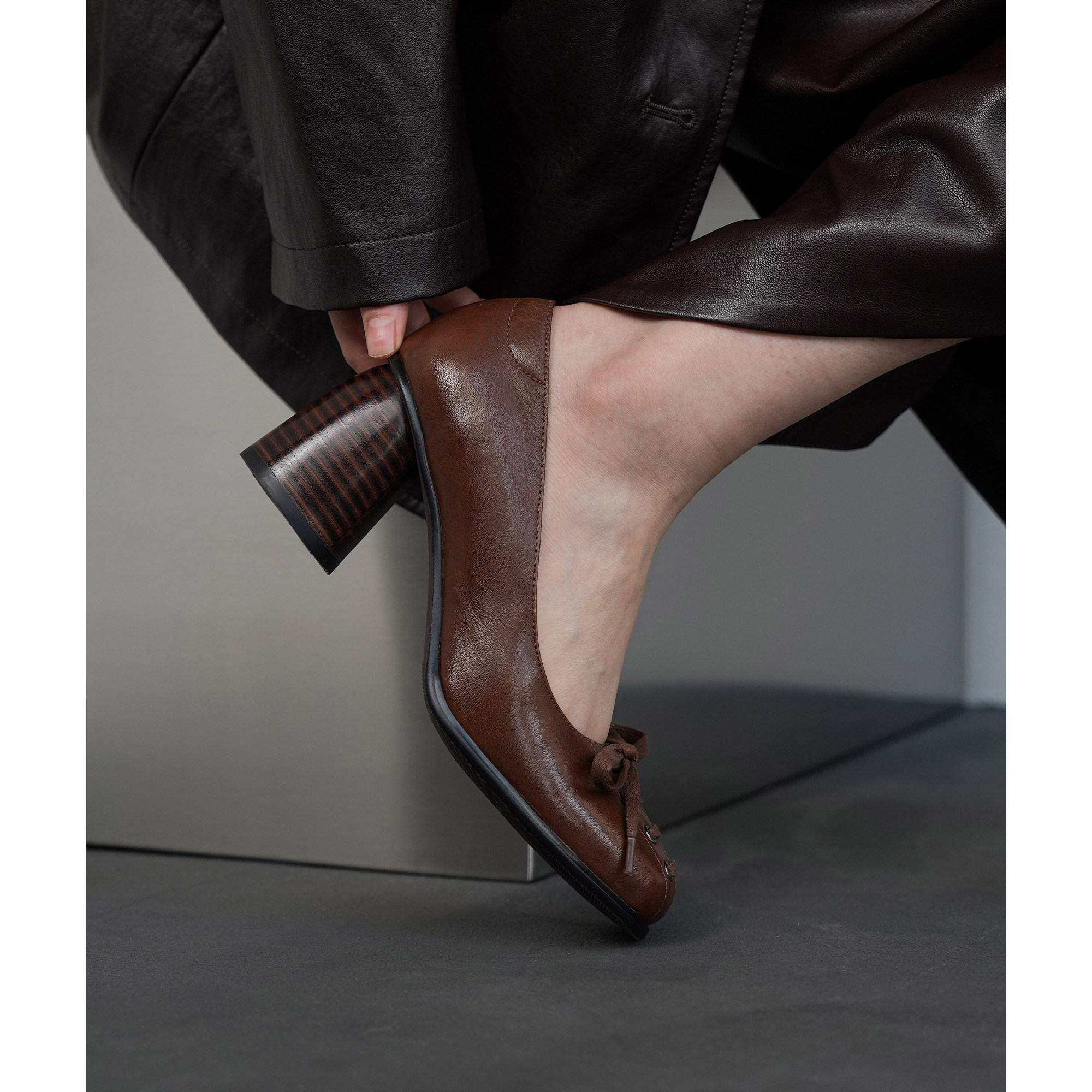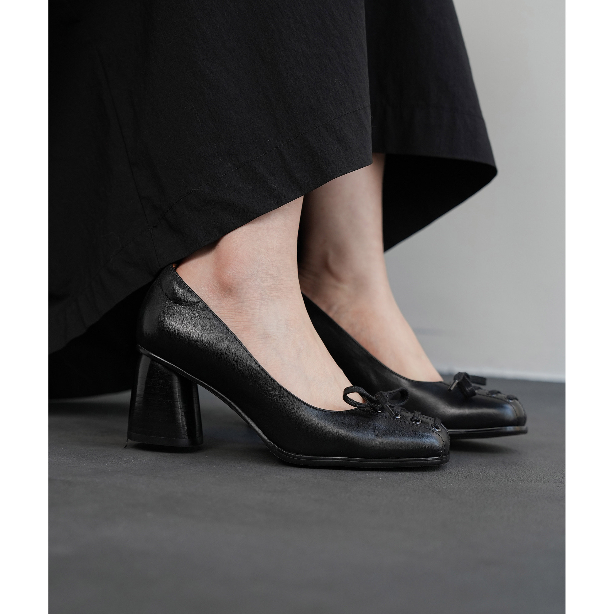 Fermina 方头浅口单鞋女粗跟高跟鞋真皮通勤女鞋春季新款中古女鞋