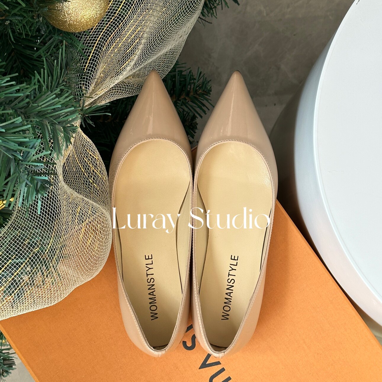 【Luray高级定制】全羊皮!现货!内增高3cm单鞋尖头裸色