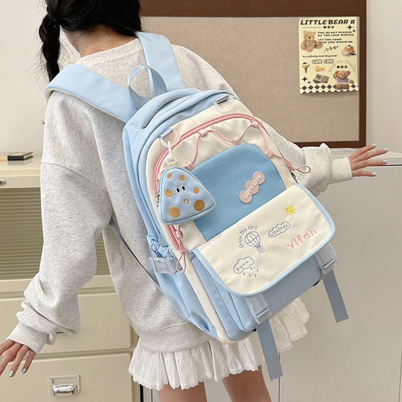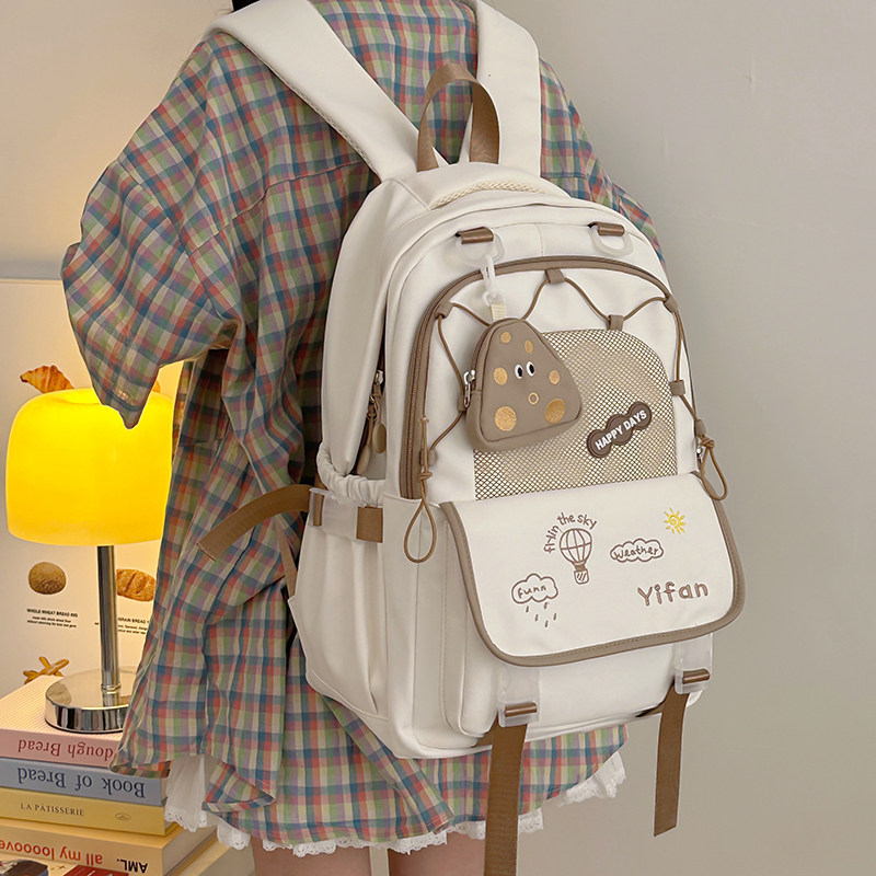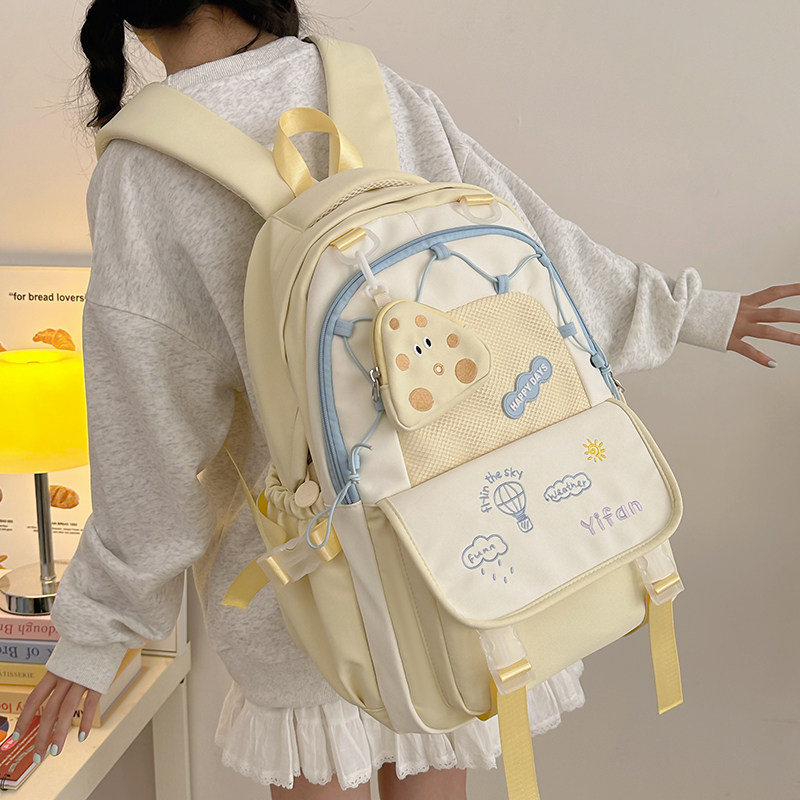 书包女高中生设计感小众高颜值耐脏背包黑色大容量韩系女生双肩包