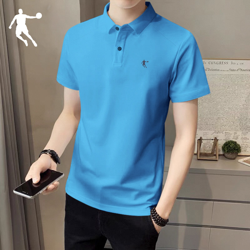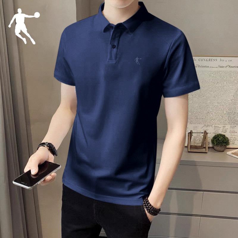 乔丹短袖男青少年polo衫夏季薄款t恤蓝色透气半袖男士健身运动服