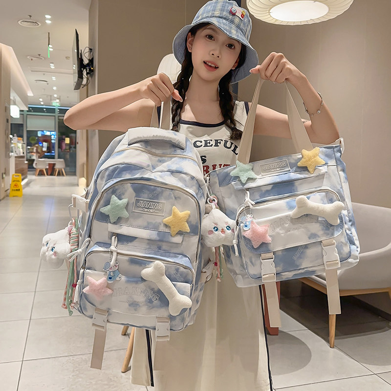 书包女生小学生一三六年级初中生女孩大容量背包蓝色绿色粉色涤纶