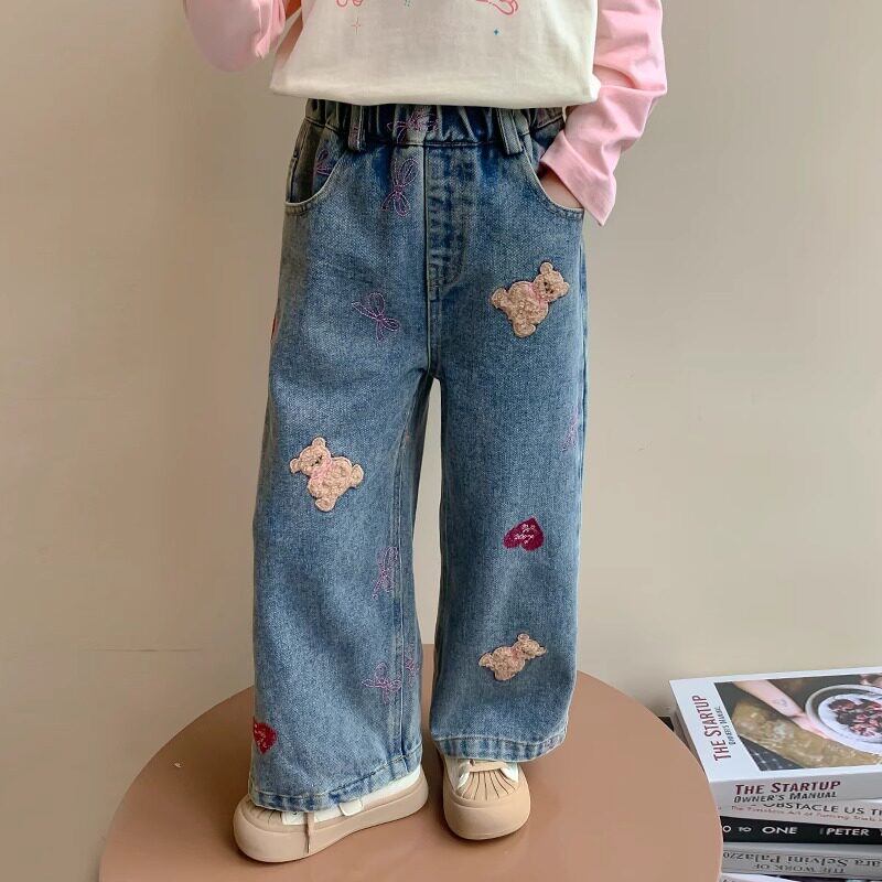 女童阔腿牛仔裤春秋款2026新款女宝宝春季儿童装春装裤子洋气直筒