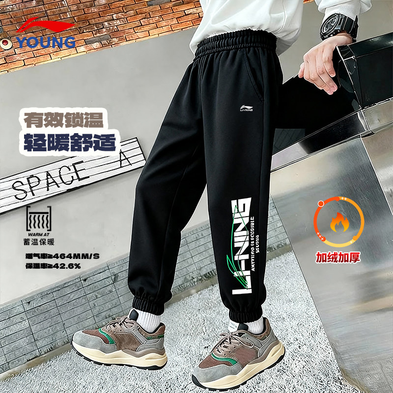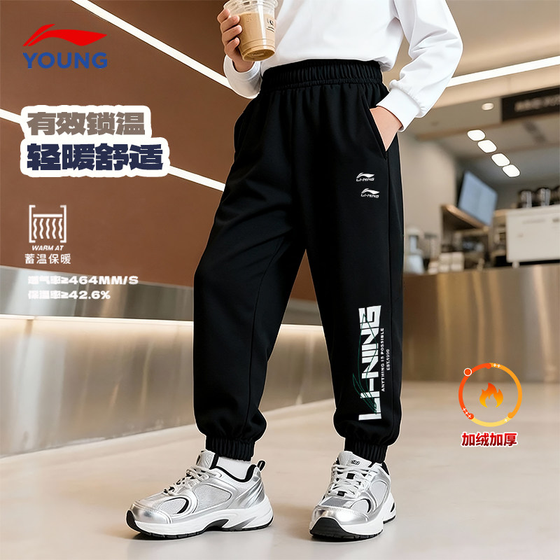 311线报网描述:李宁男童加绒裤子束脚保暖长裤官方正品授权