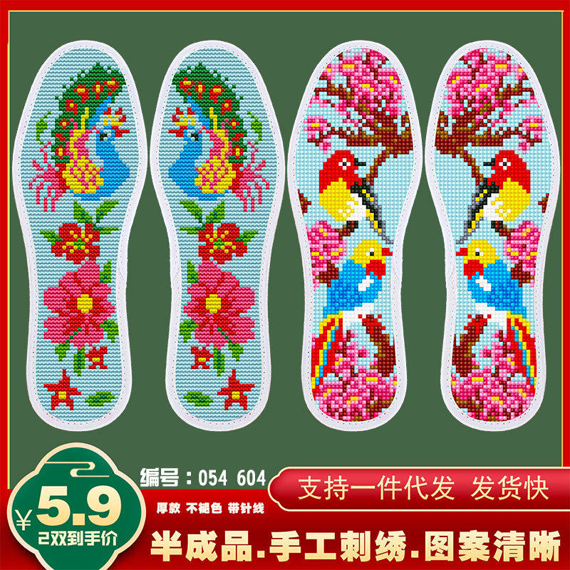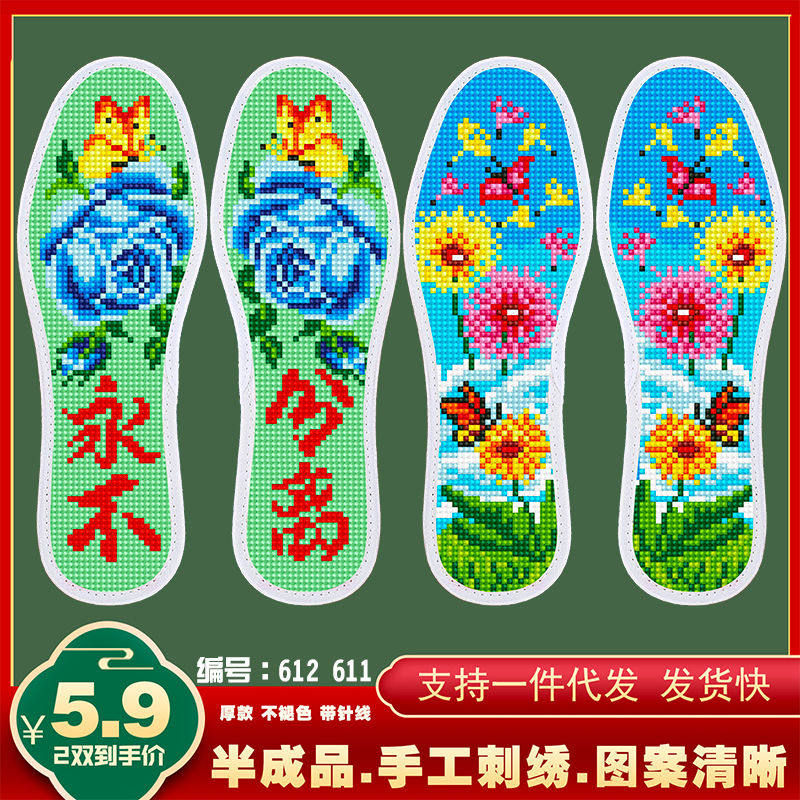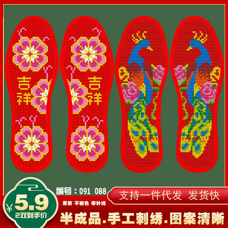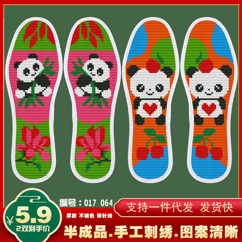 清仓十字绣鞋垫结婚图案带针线新款加厚熊猫手工印花不褪色2双