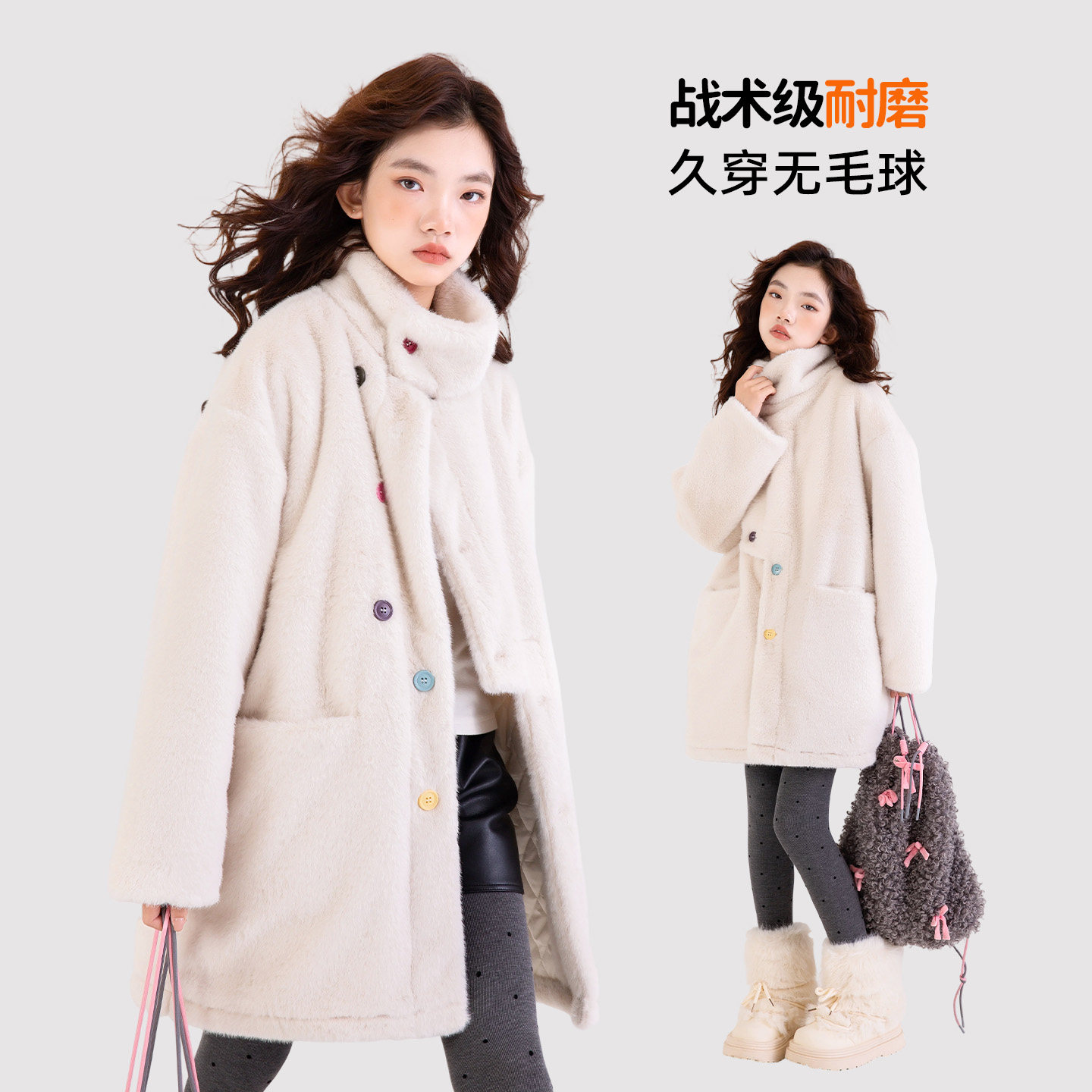 女大童皮草夹棉外套加厚冬装初中生女孩加绒上衣皮毛一体2026冬款