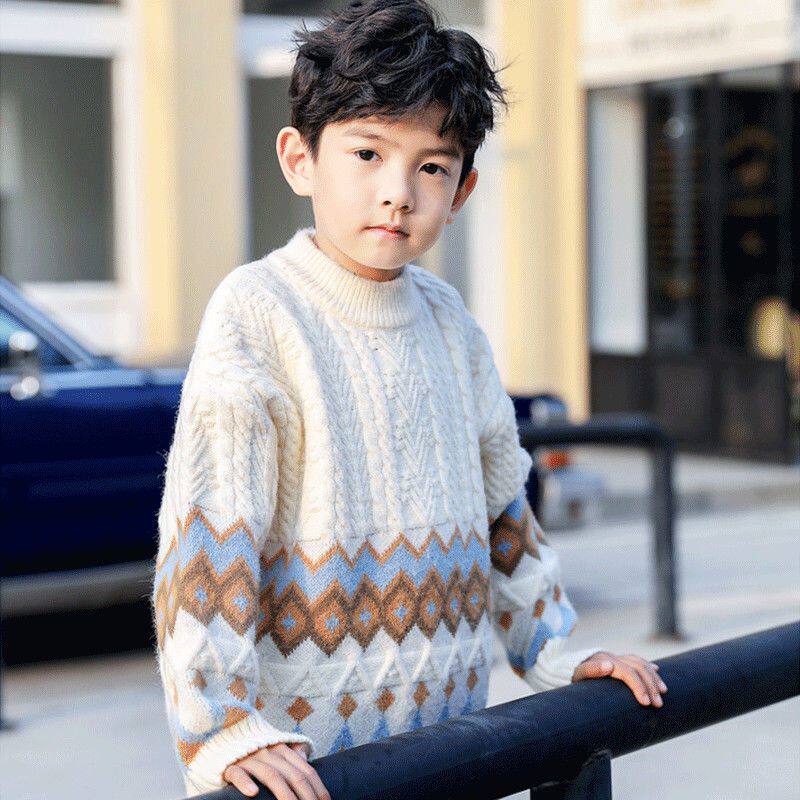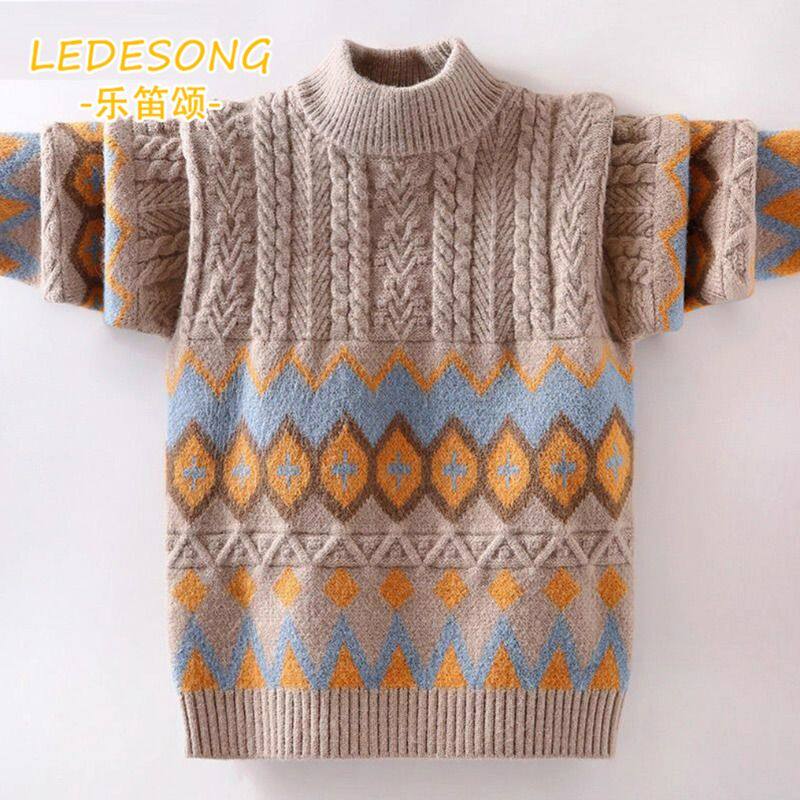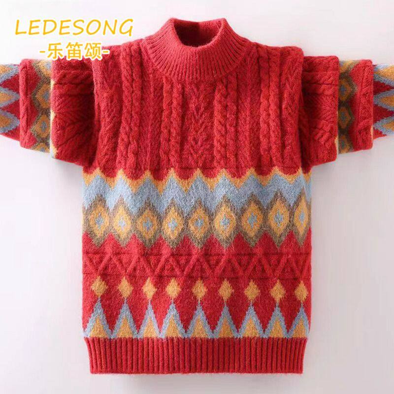 儿童毛衣秋冬款2025中领针织男孩线衣中大童加绒加厚半高领红色