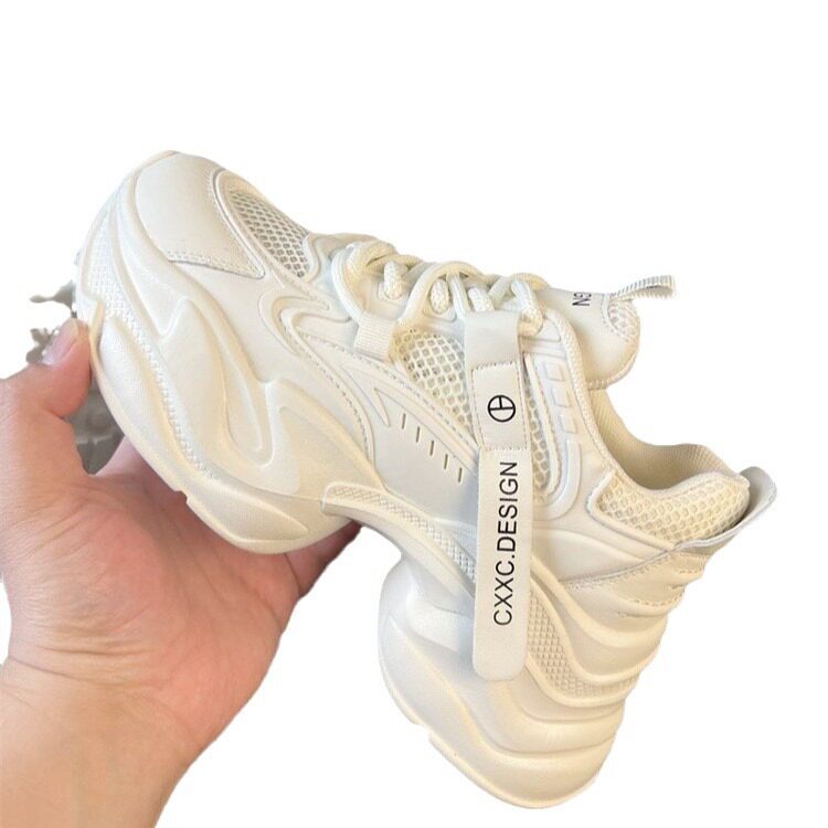 老爹鞋女款2025新款春夏季厚底内增高女鞋休闲运动小白鞋网面