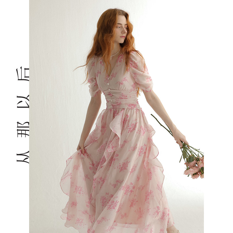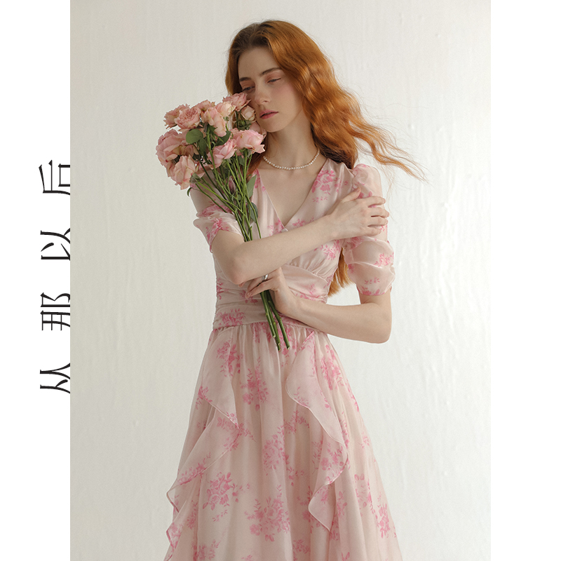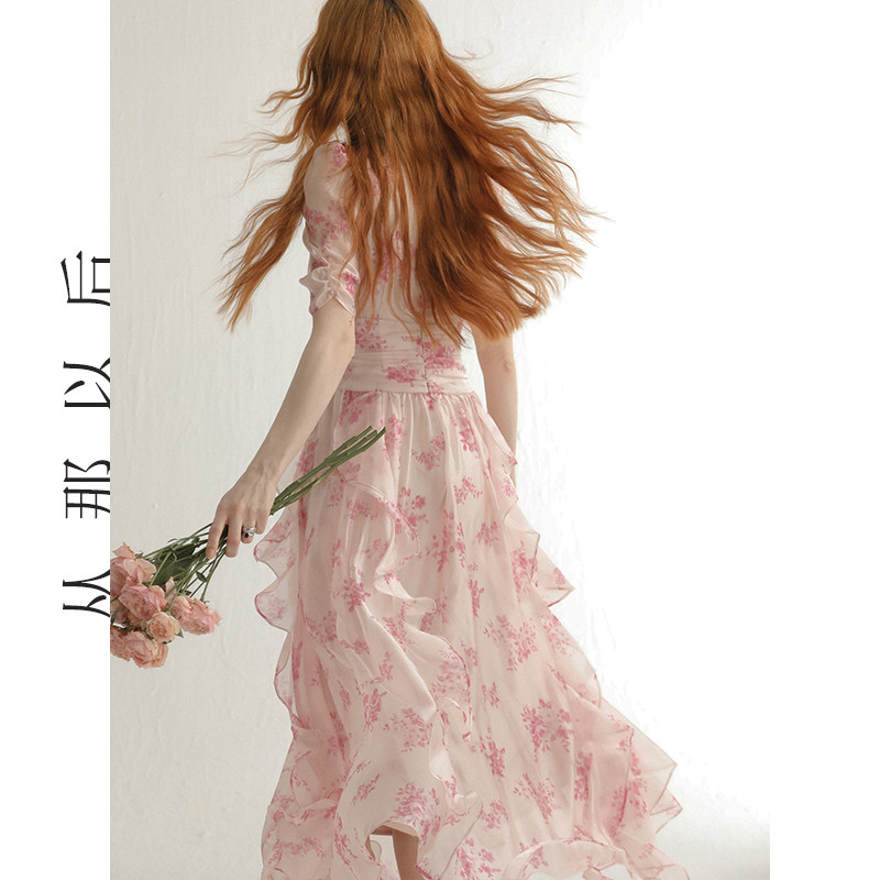 从那以后法式碎花裙夏粉色小裙子雪纺连衣裙高级感海边度假穿搭女