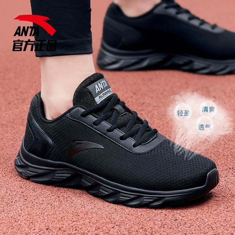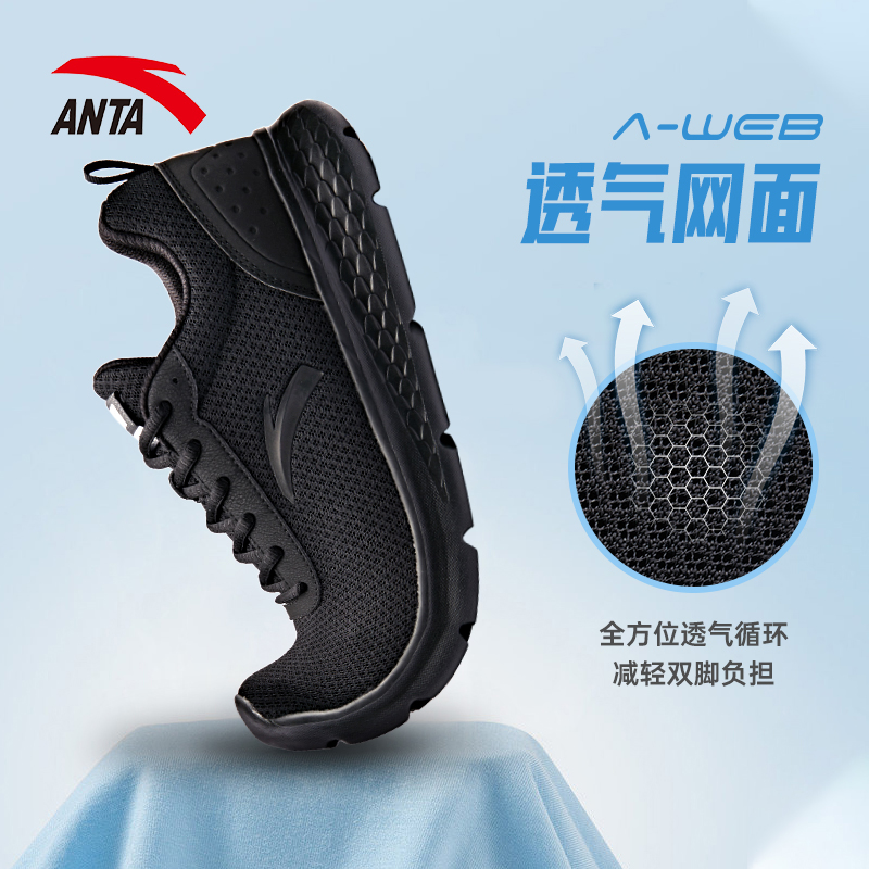 安踏男鞋运动鞋男款夏季官方旗舰正品透气休闲黑色网鞋跑步鞋子男