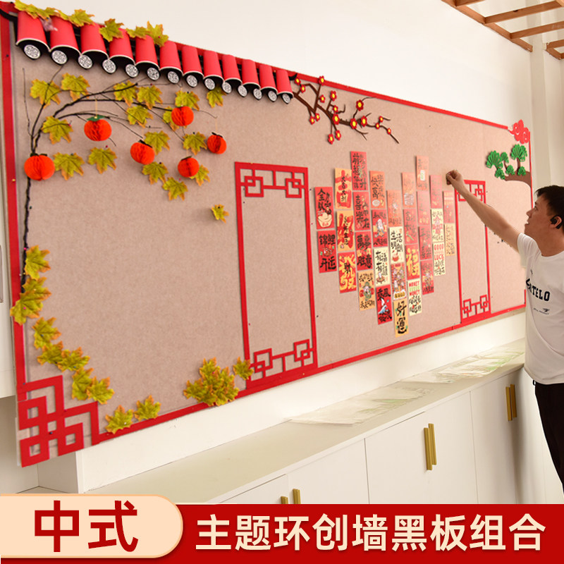 中式板报黑板墙面墙贴边框组合教室装饰走廊布置装饰立体墙贴套装
