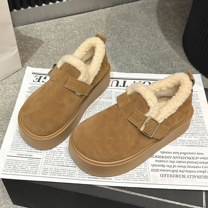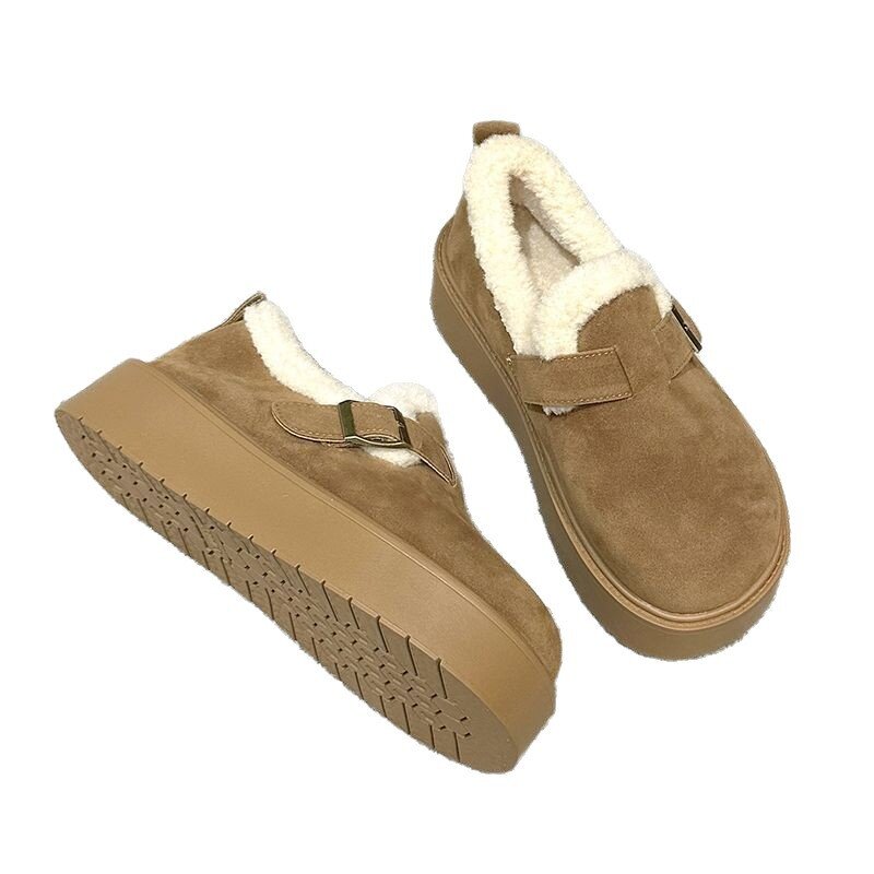 厚底勃肯鞋女加绒加厚雪地靴2026新款冬季女鞋皮毛一体博肯大棉鞋