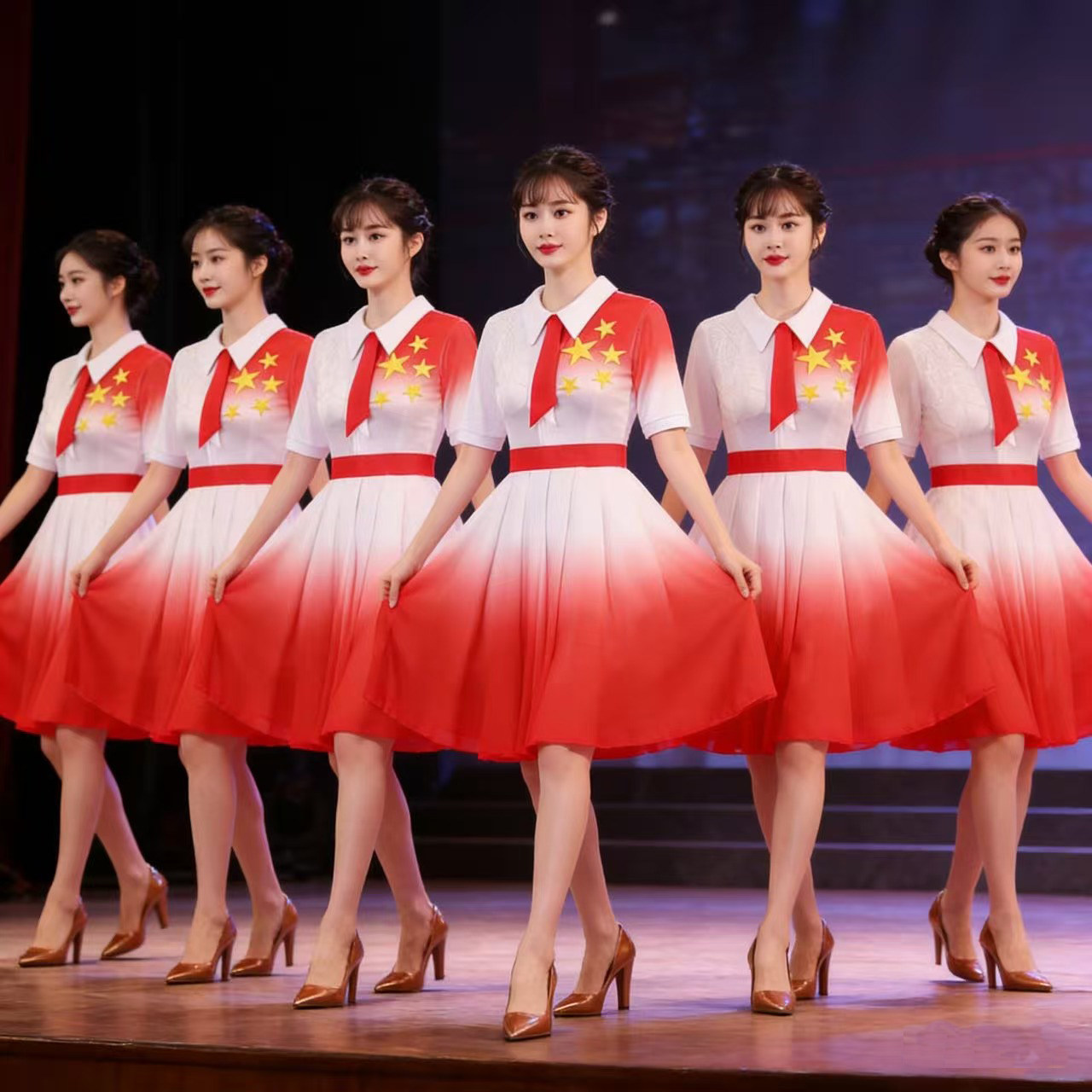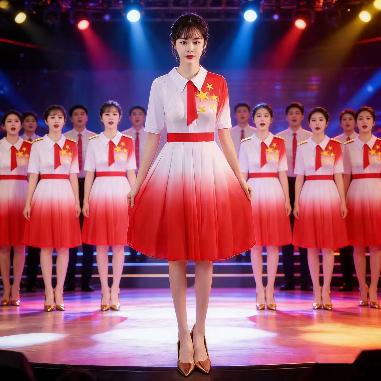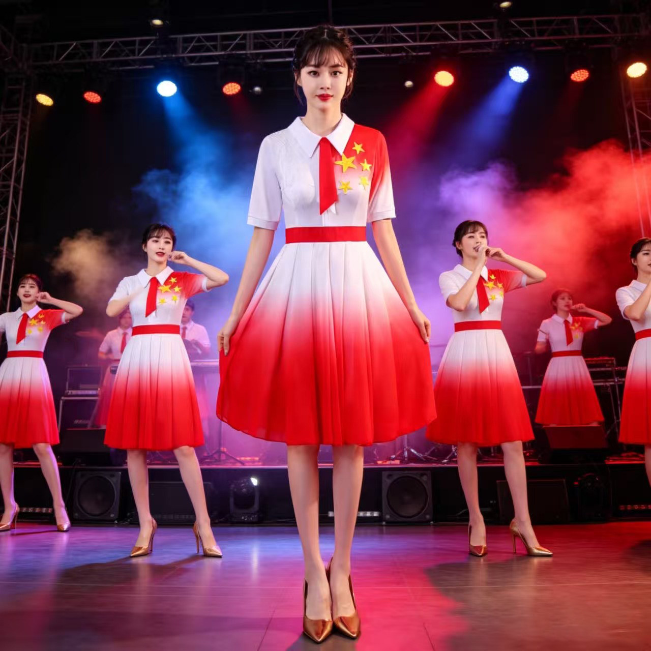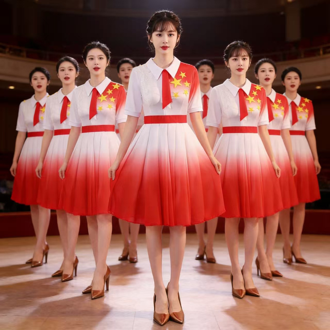 儿童初中小学生女童中国风合唱诗歌红色爱国朗诵演讲比赛演出服装