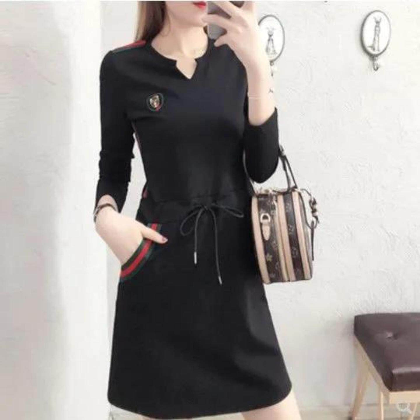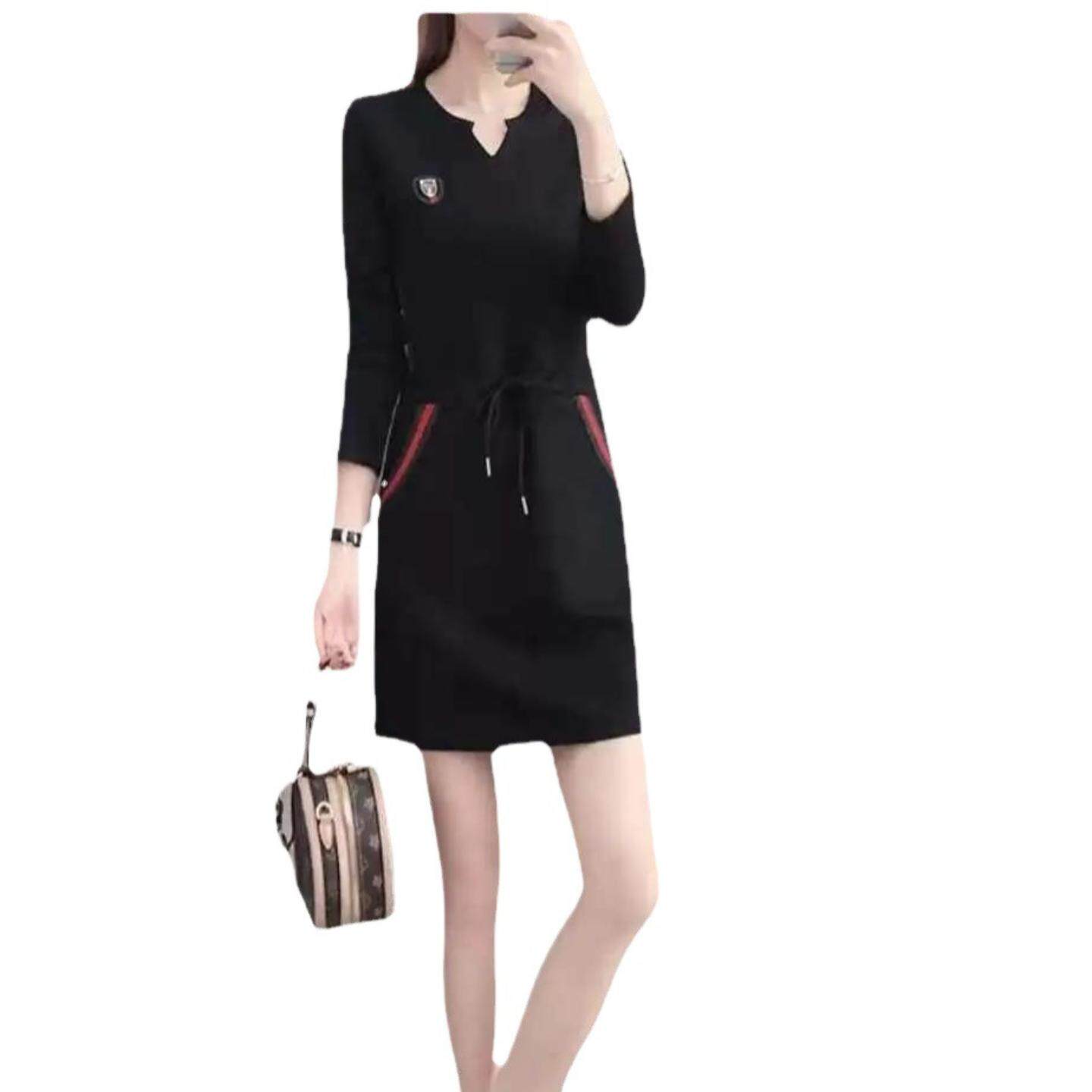 大码春季运动休闲伪娘连衣裙长袖V领洋气裙子减龄男娘直筒裙