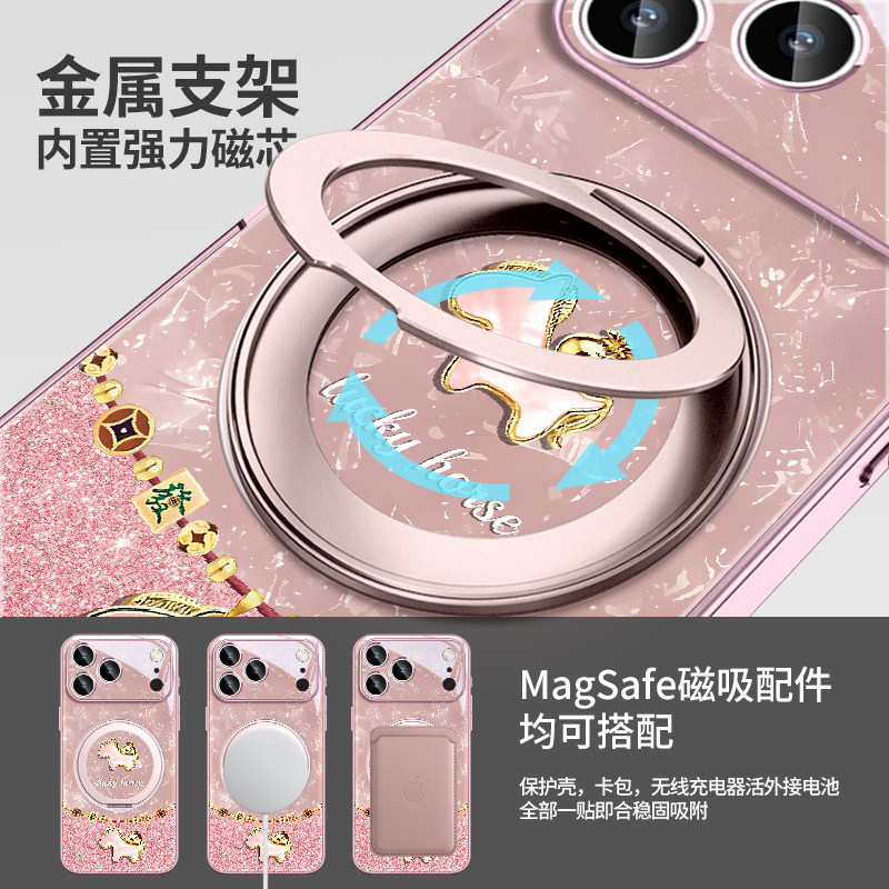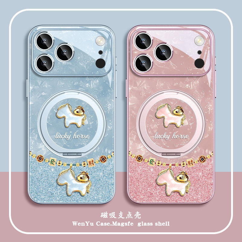贝纹发财马适用苹果17promax手机壳2026新年16pro本命年iphone17新款15高级感14磁吸13带支架16e女款12pm外壳