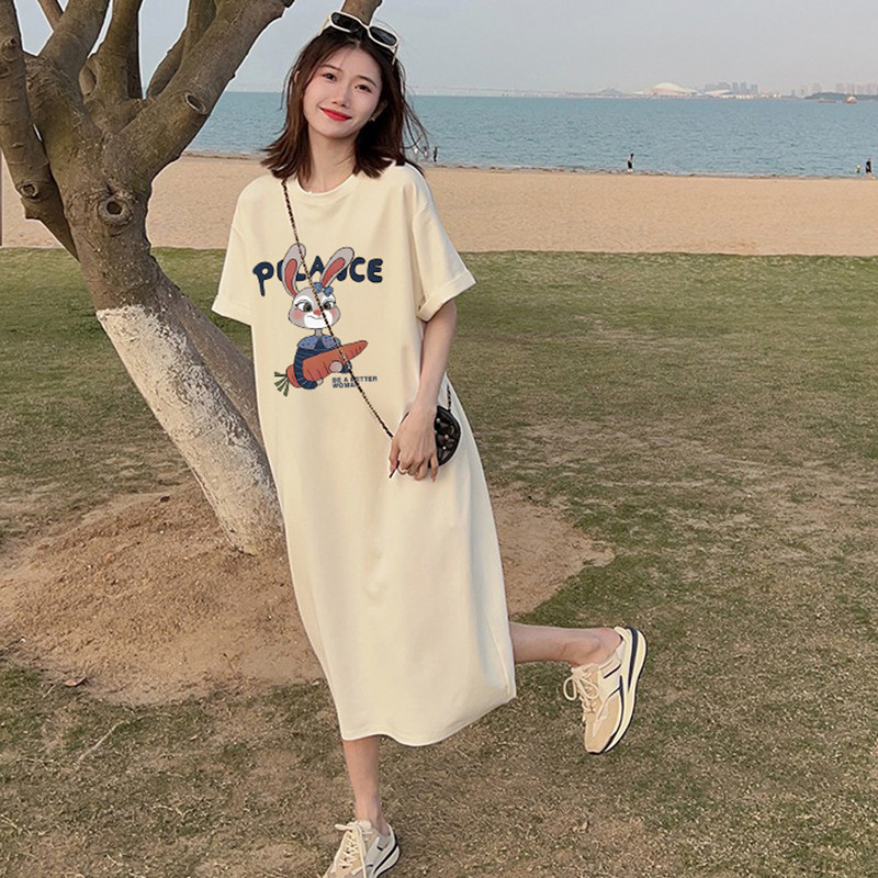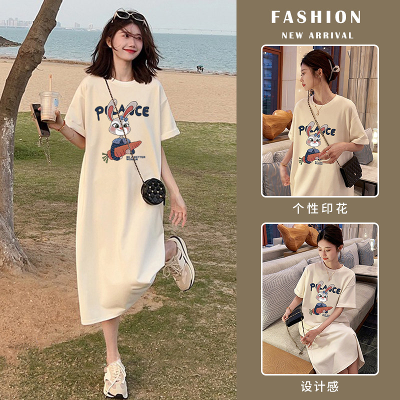 孕妇夏装短袖t恤裙子女时尚2025新款宽松大码长裙休闲夏季连衣裙