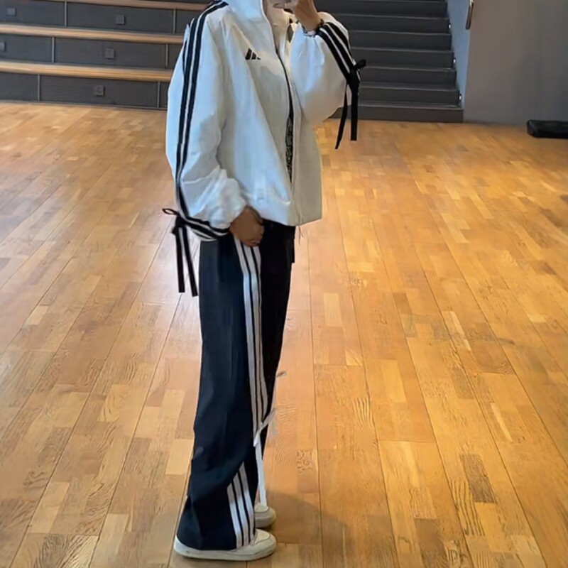 阿迪达斯女装春季运动套装轻薄款梭织夹克外套直筒长裤子26新款