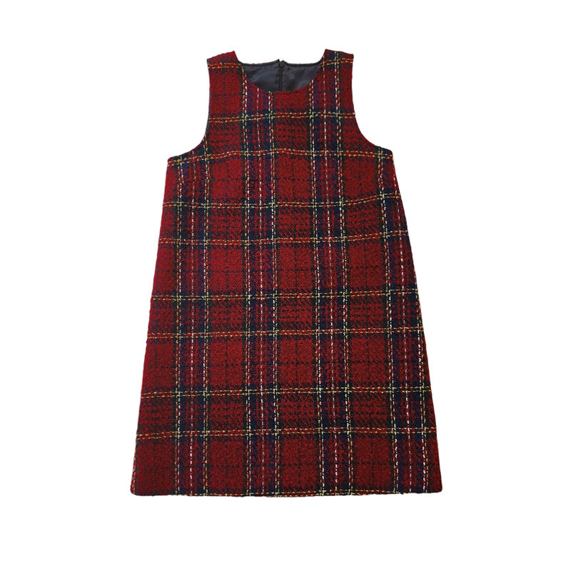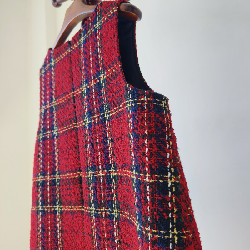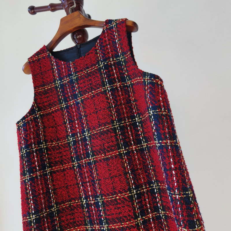 秋冬季新款女红色大格子气质显瘦小香风背心裙A字短款无袖连衣裙