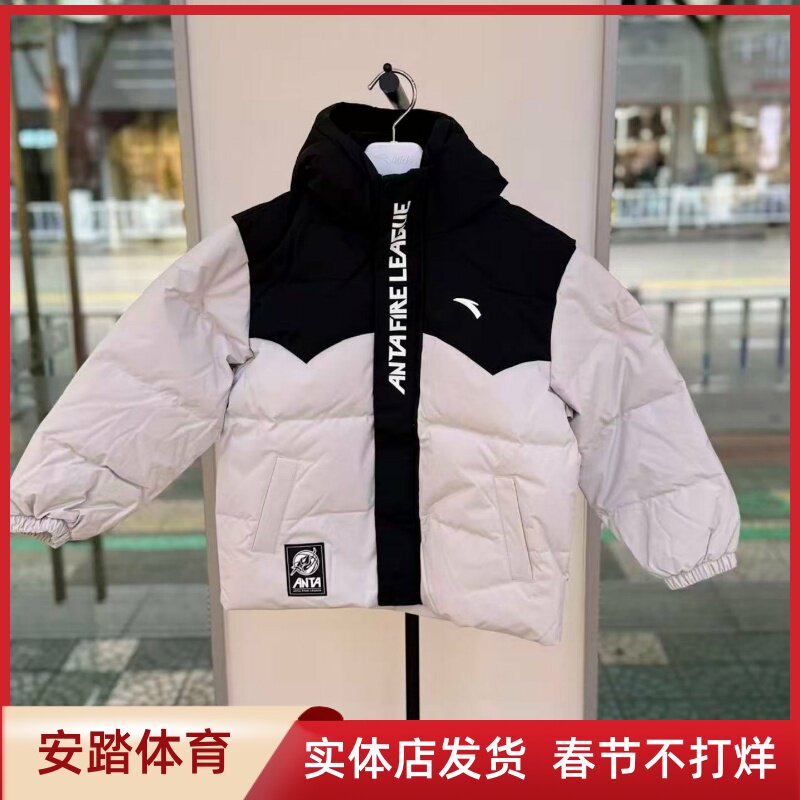 安踏儿童2025冬季新款男大童宽松版连帽篮球运动羽绒服352541902