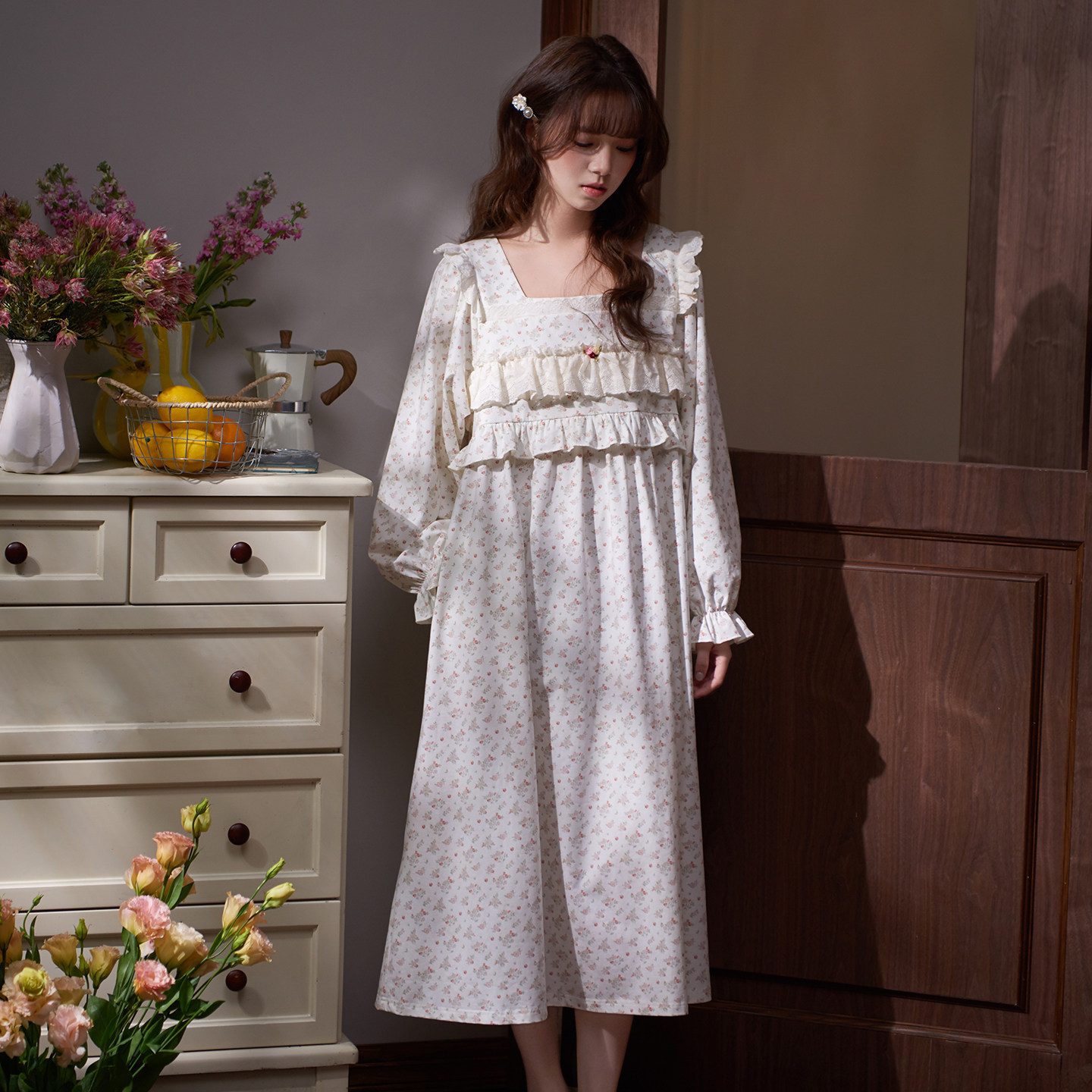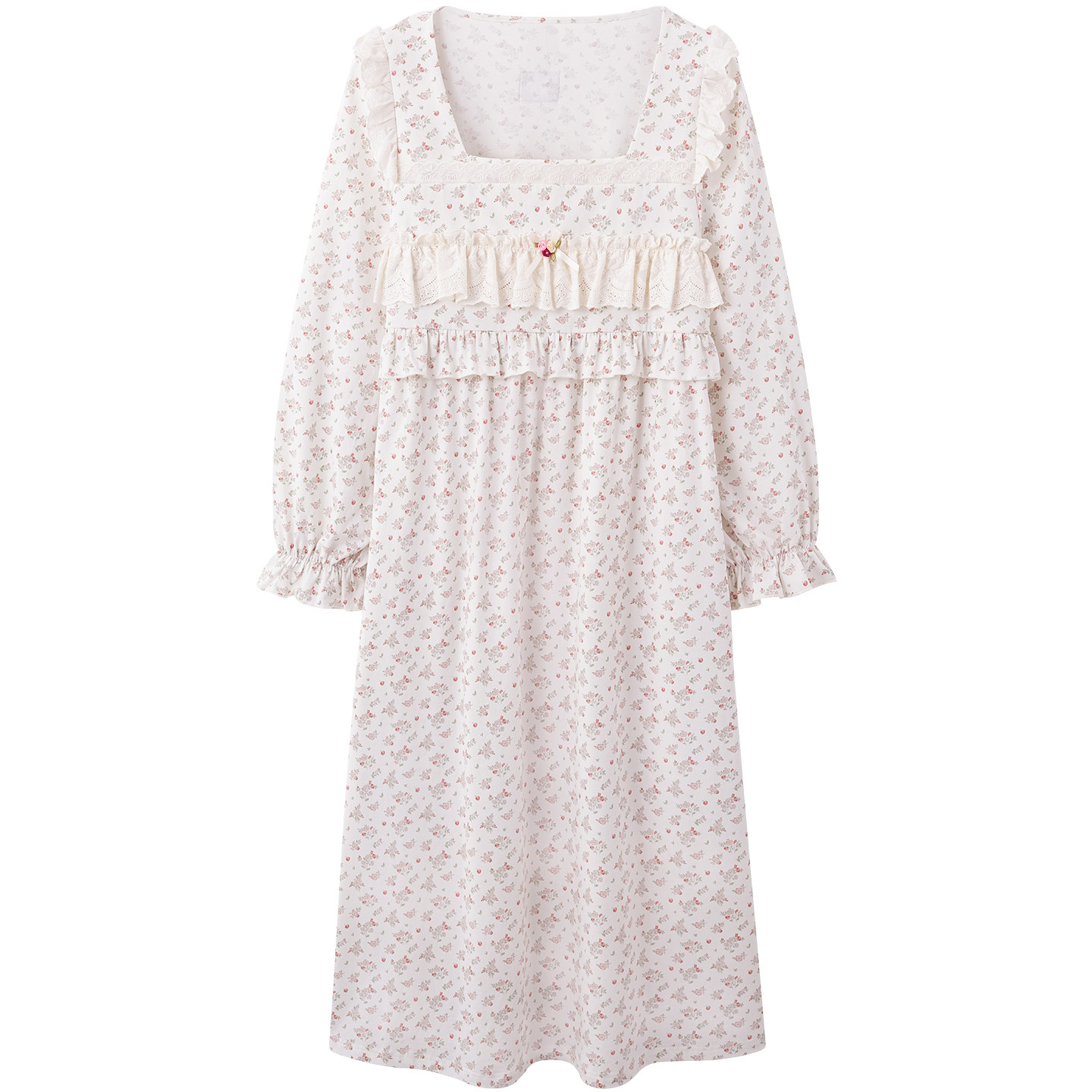 马克公主春秋纯棉碎花睡裙女款法式长袖甜美公主风漂亮睡衣连衣裙