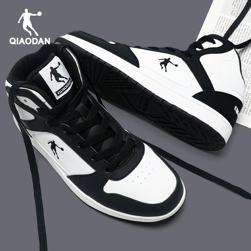 乔丹板鞋男鞋高帮鞋2026春季新款皮面防水运动鞋男款休闲黑色鞋子