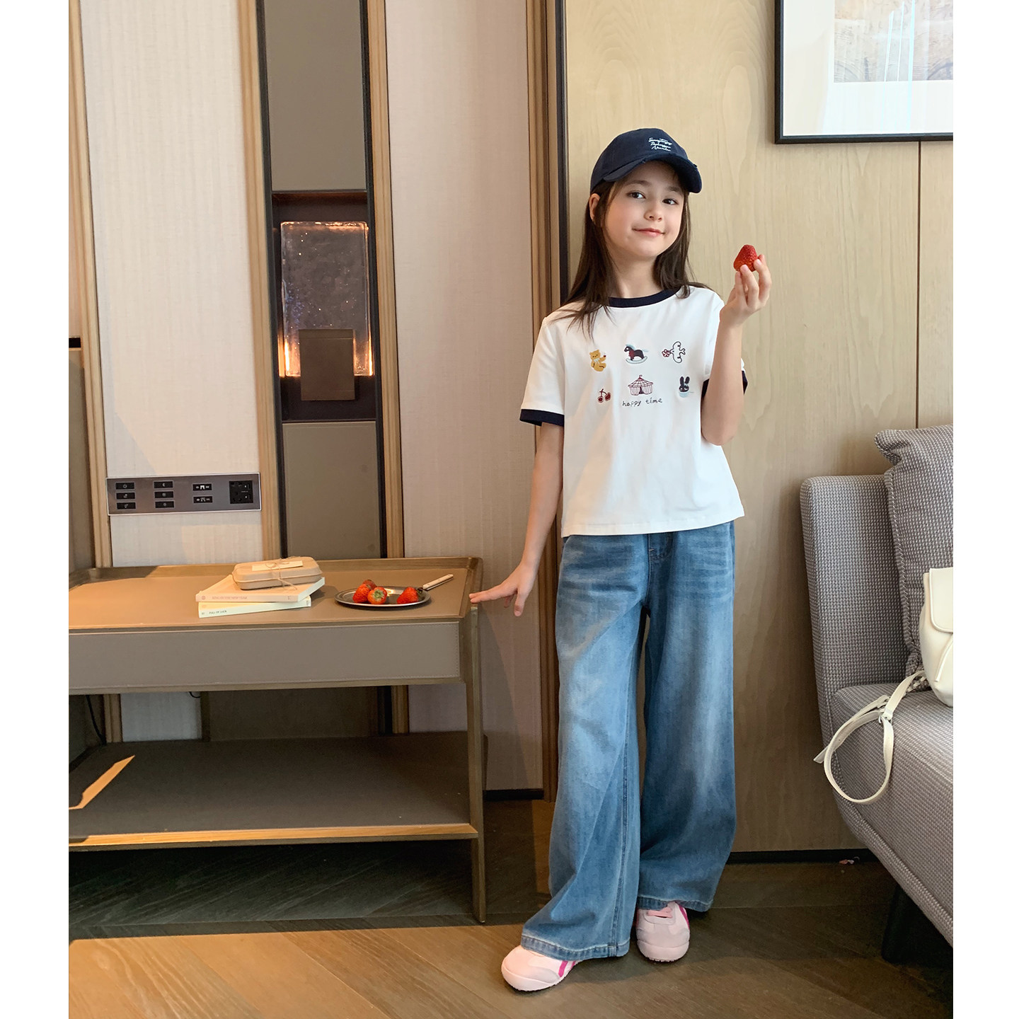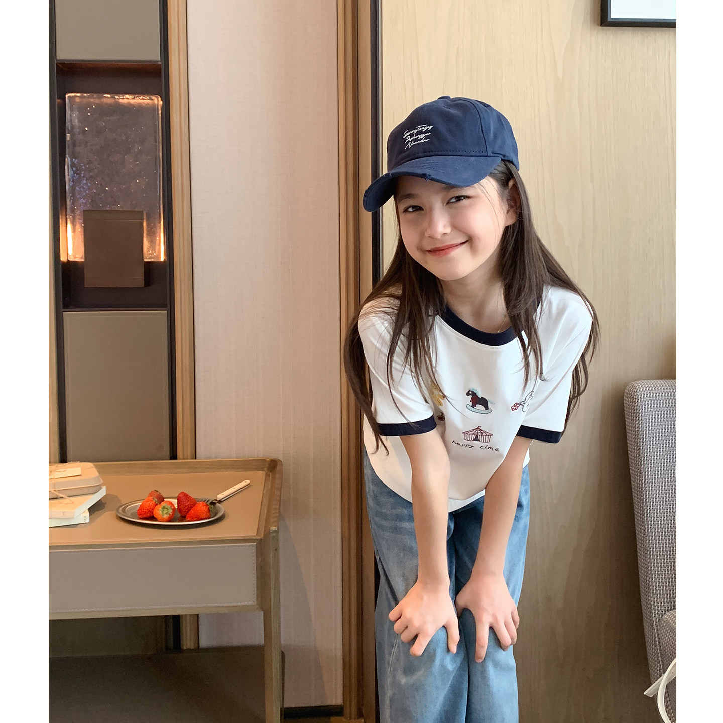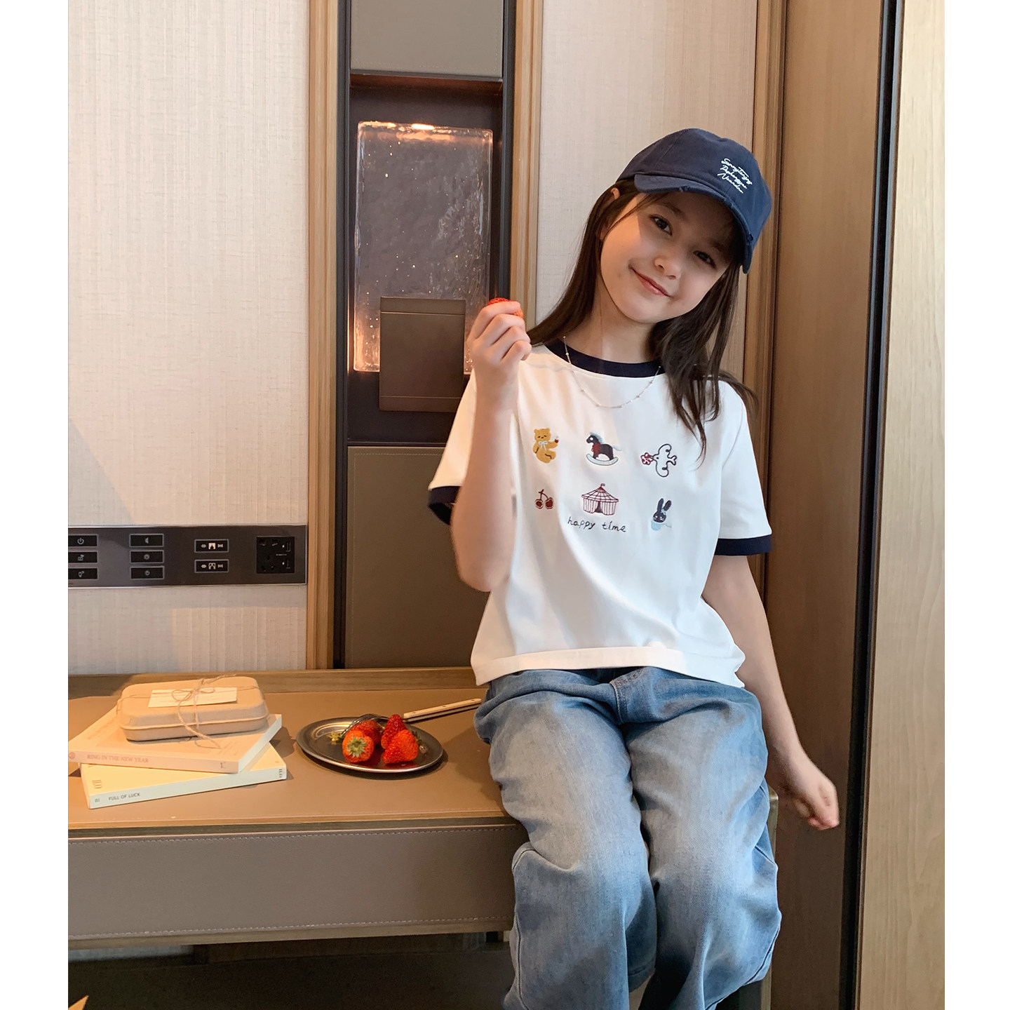 女大童卡通刺绣短袖2026夏装新款青少年短款正肩T恤学生韩版上衣